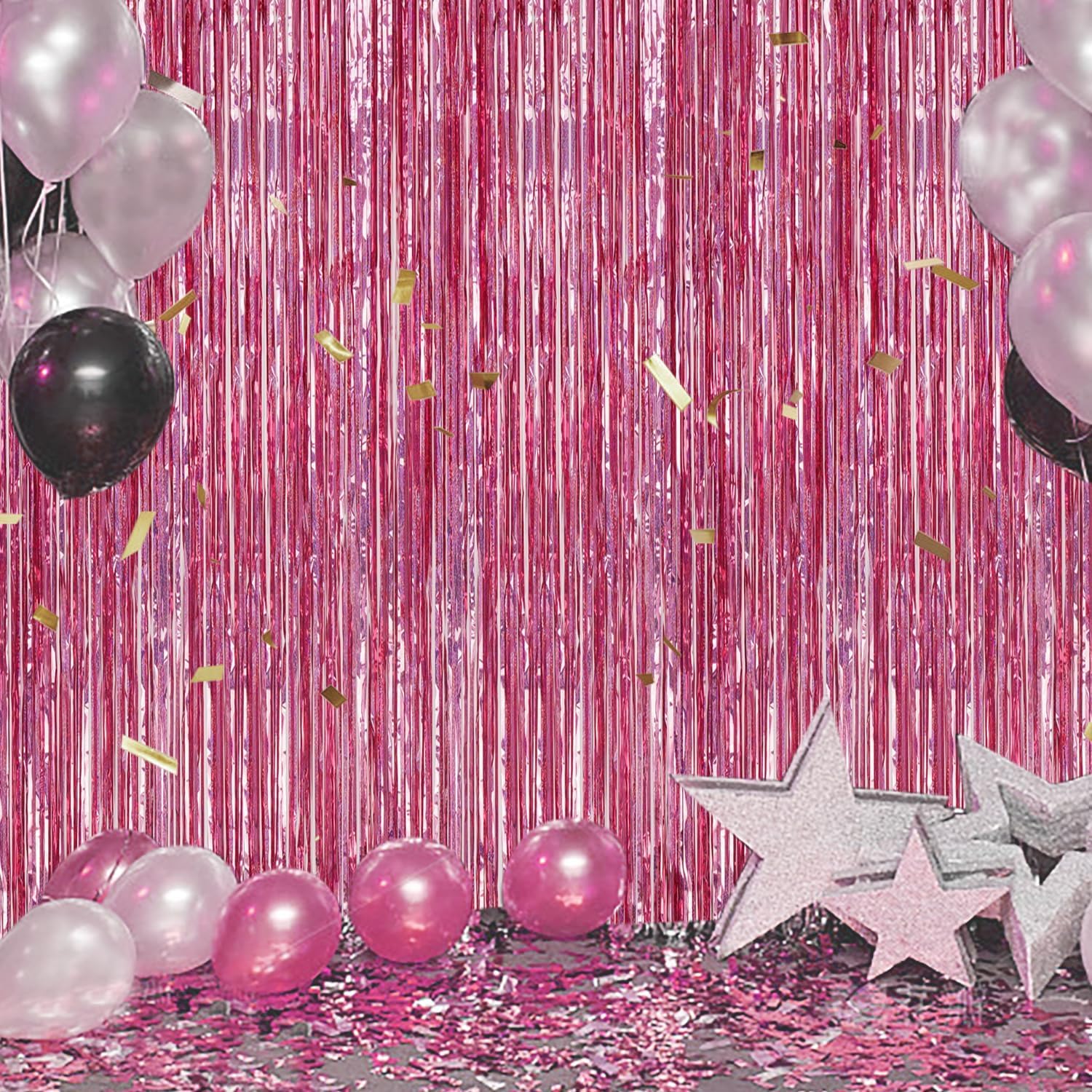 3 Pack Foil Fringe Backdrop - Laser Pink Shiny Tinsel Curtains for Party Decoration/Photo Booth Props - 3.3x8.2 FT Metallic Foil Backdrop for Birthday, Wedding, Graduation, Christmas.
