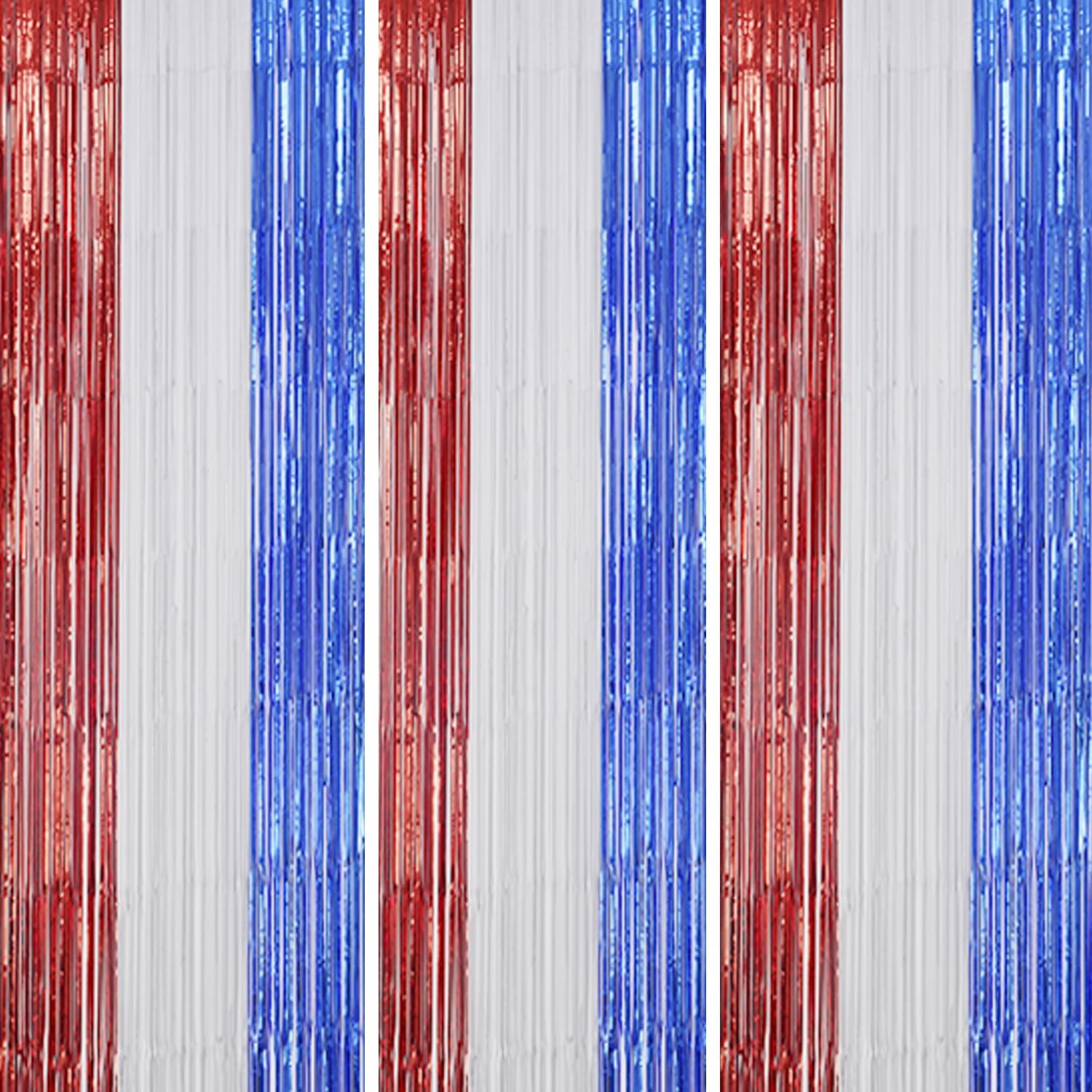3 Pack Foil Fringe Backdrop - Red&White&Blue Shiny Tinsel Curtains for Party Decoration/Photo Booth Props - 3.3x8.2 FT Metallic Foil Backdrop for Birthday, Wedding, Graduation, Christmas.