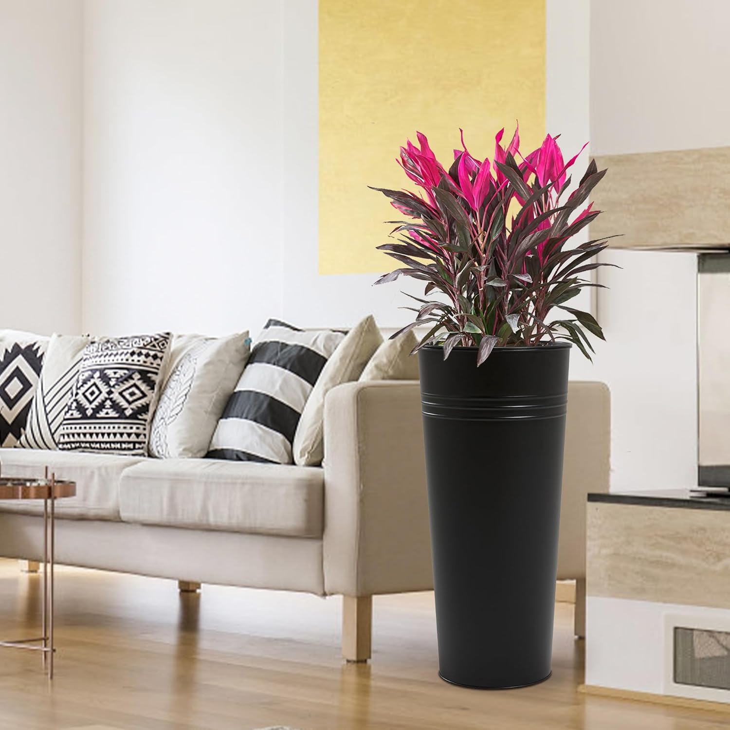 - LIGHTWEIGHT: These 28" high flower pots are lightweight enough so you can lift them easily. Each planter weighs only 8.5lb. Also, the insert can be easily removed with the plant in it for easy mobility. For outdoor use, we recommend using a stone stabilized base.