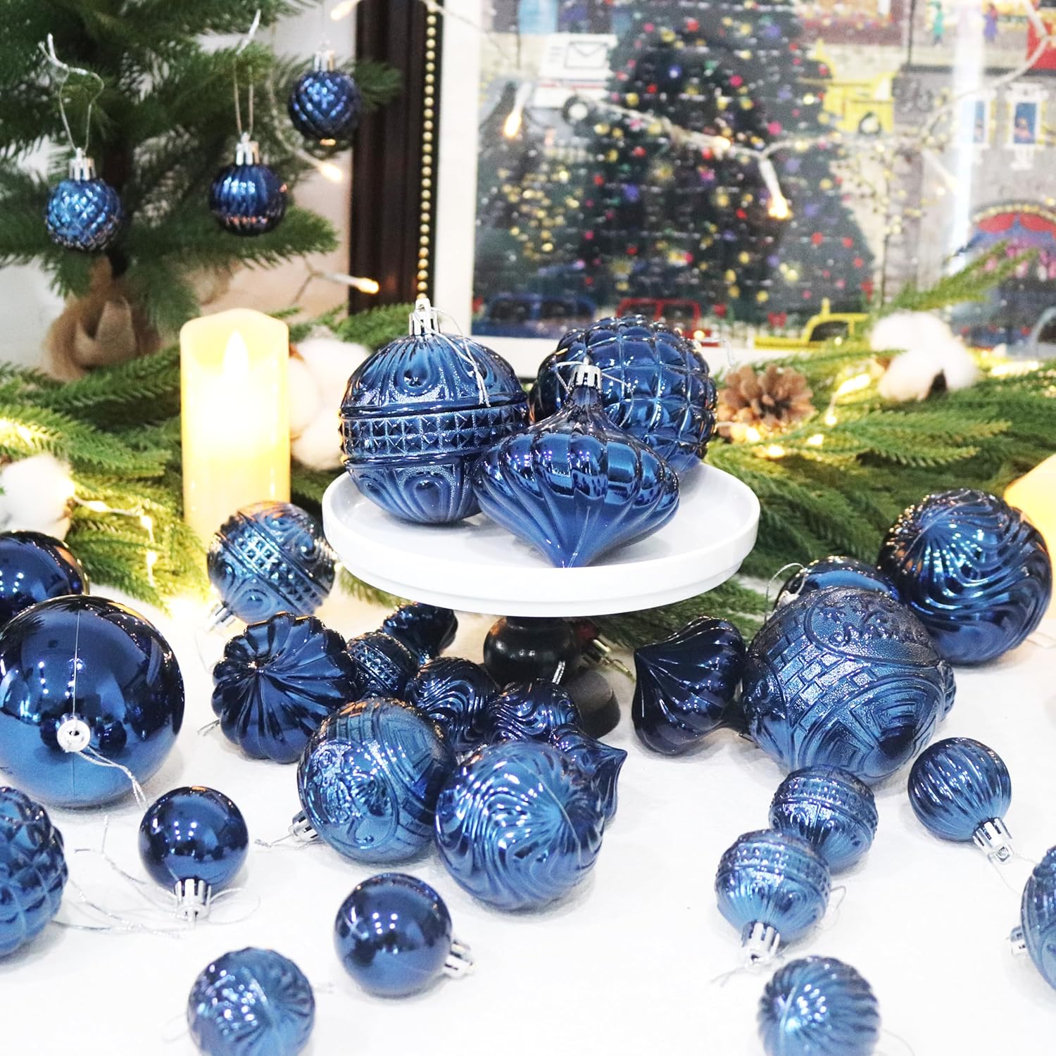 Senjie 36pcs Night Blue Christmas Ornaments Set with 7 Styles Multi-Size Shatterproof Christmas Tree Decorations