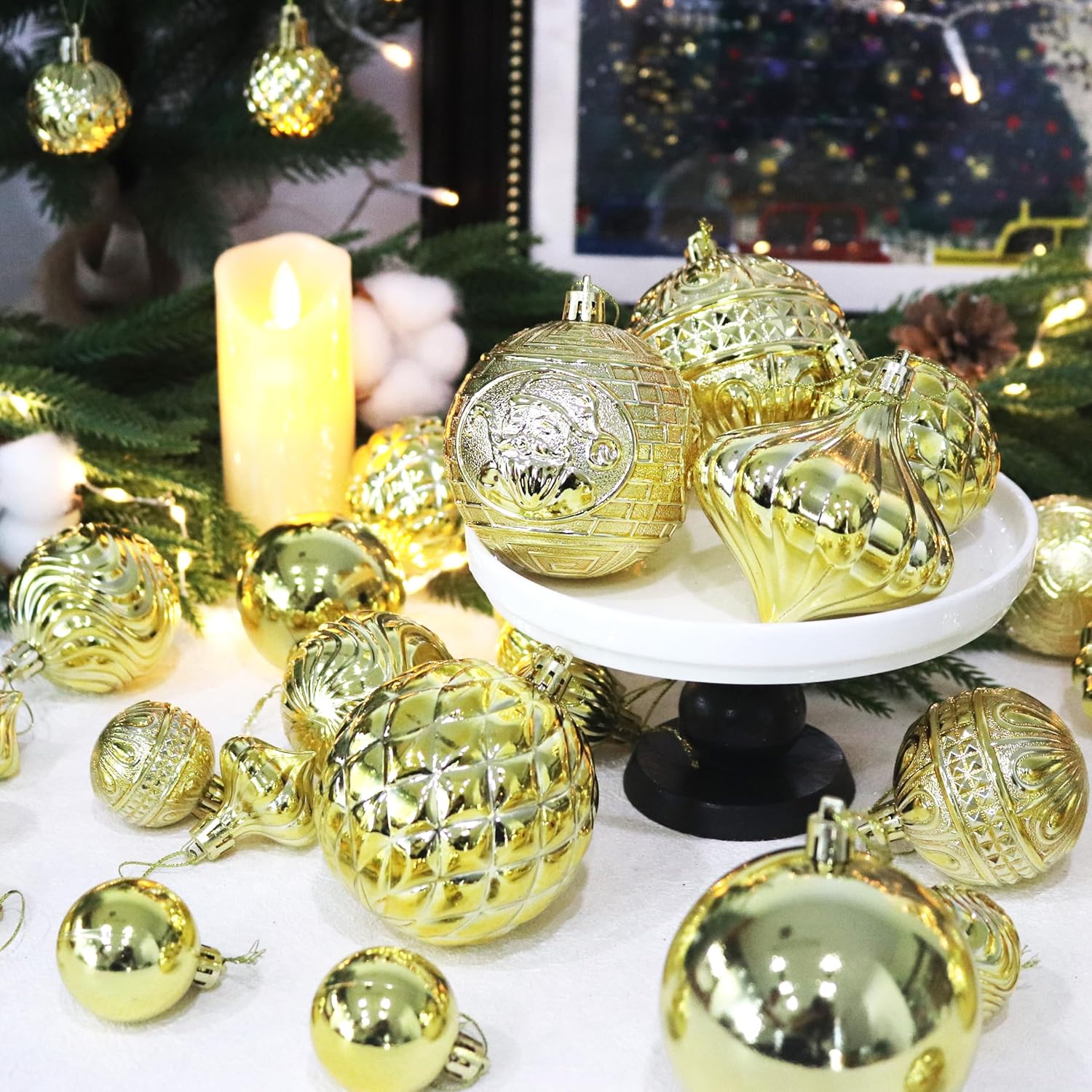 - MULTIPLE CLASSIC SIZES:Seven Popular different textures of Christmas balls to meet your decoration. includes 18 pcs small (1.57"/40mm), 12 pcs medium (2.36"/60mm) and 6 pcs large (3.16"/80mm)