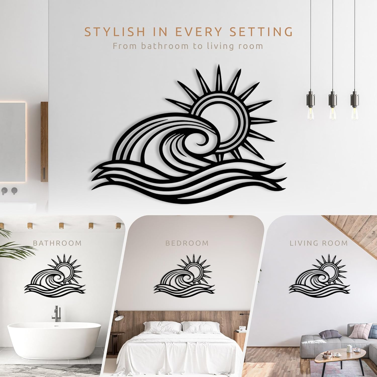 - STYLISH COASTAL DESIGN: Featuring an intricate ocean wave and sun motif, this coastal wall sculpture adds a touch of nautical elegance to any space. Its sleek, modern design complements various decor styles, making it a versatile addition to your home or garden.