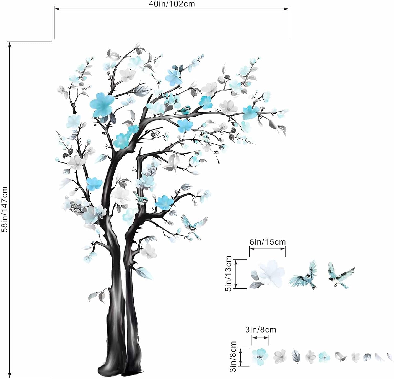 Large Watercolor Tree Wall Decals - Flower Tree Branch Wall Stickers - Bedroom Living Room Sofa TV Background Home Wall Decor