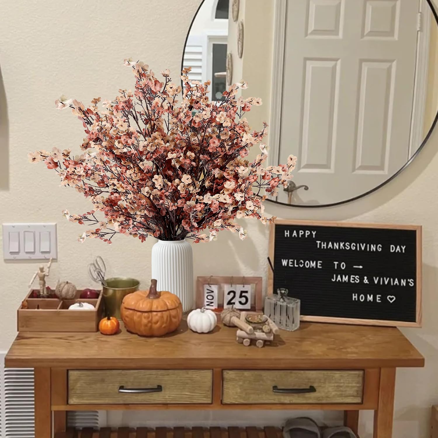 Sggvecsy 15 Pcs Babys Breath Artificial Flowers Gypsophila Bouquets Bulk Real Touch Fake Silk Flowers for Home DIY Floral Arrangement Table Centerpiece Fall Thanksgiving Autumn Decoration (Mixed)