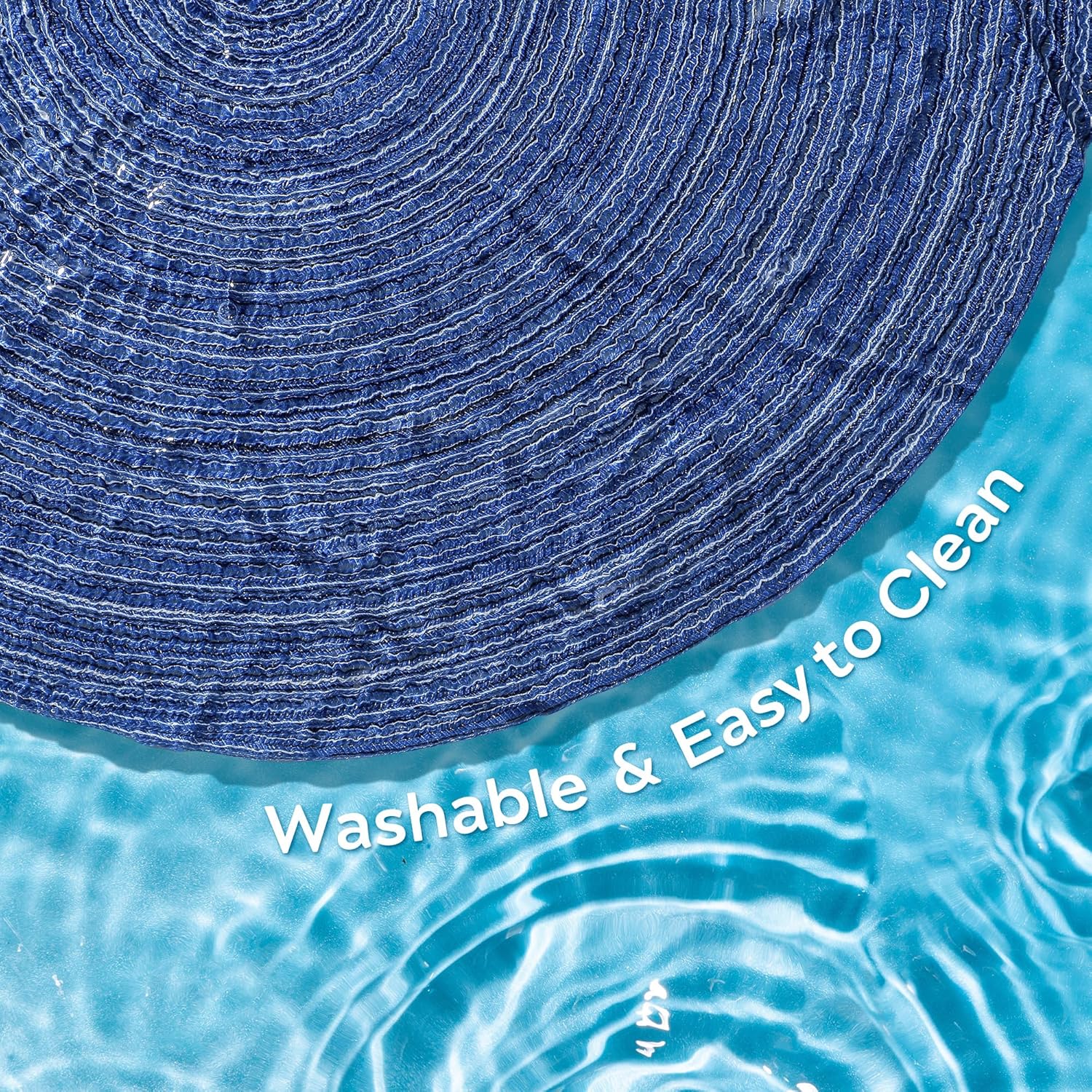 Leetaltree Round Placemats Heat and Slip Resistant Cotton Table Mats, Washable Bohemian Placemats for Dining Tables (Denim Blue, Set of 6)