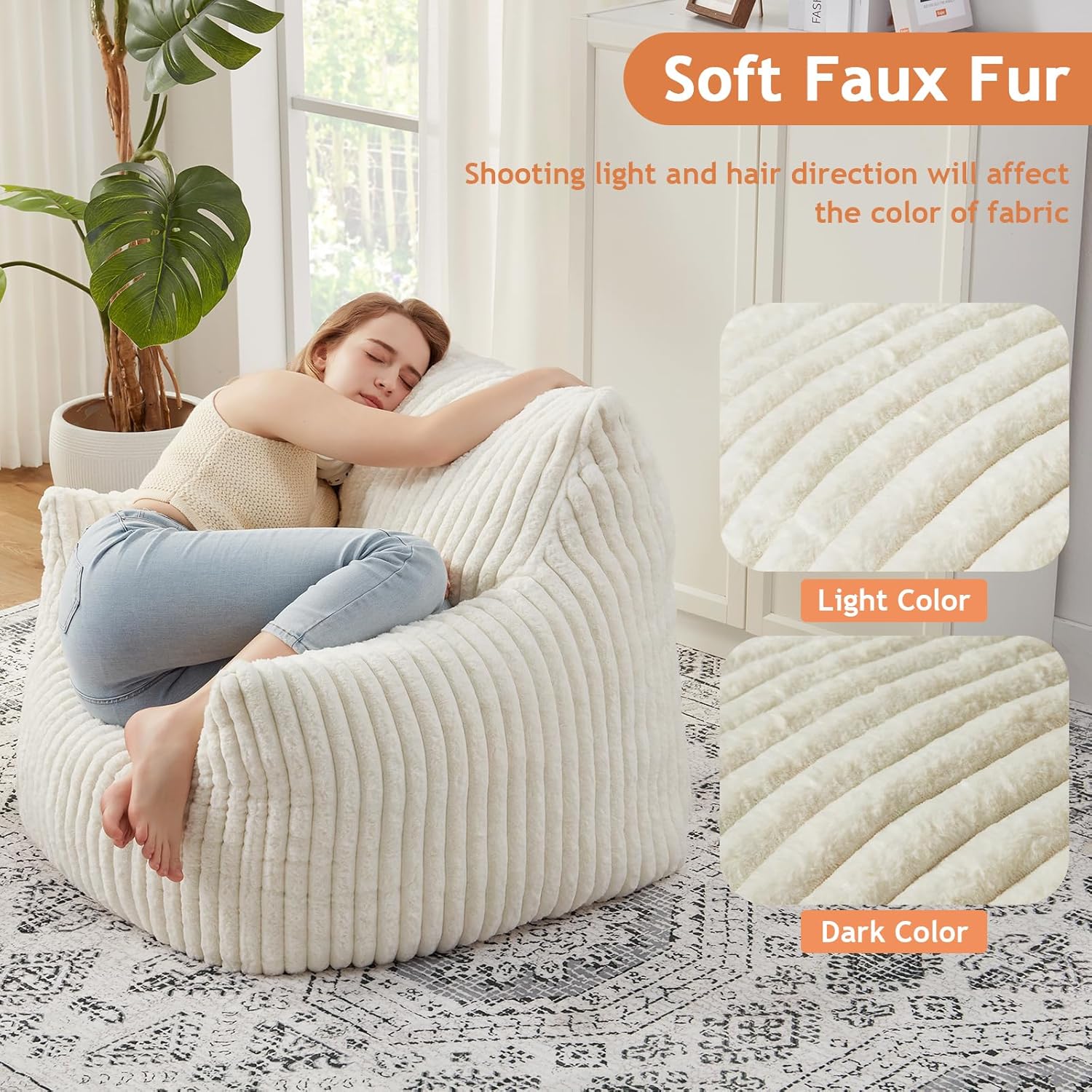 - ăPERFECT GIFTă: The bean bag sofa chair is faux fur fabric, soft material and full filling, both to ensure a good comfort feeling, and also provide the optimal support, which is the best gift to increase the warmth and intimacy of the indoor atmosphere.