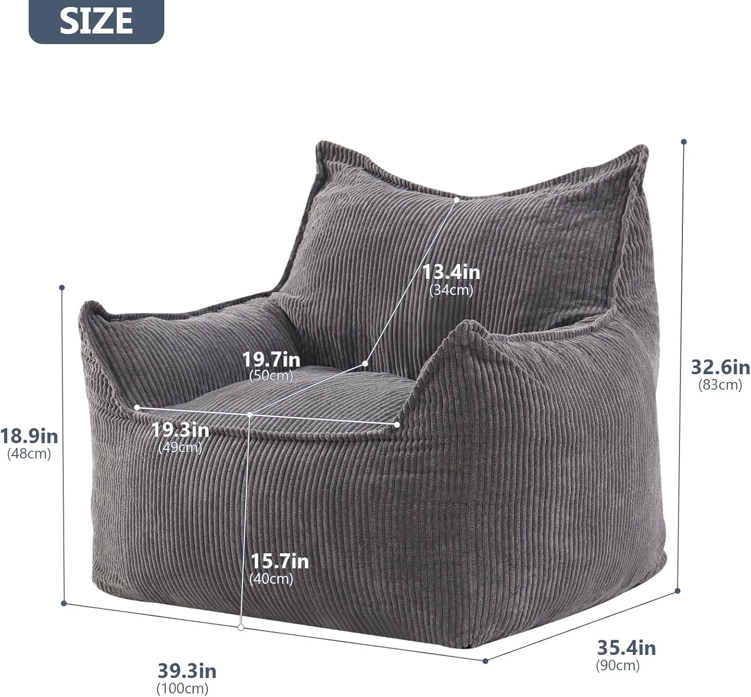 - 【MULTIPLE USAGE】: Corduroy bean bag sofa chair will blend into any home decor styles, and suitable for various rooms, perfect for bedroom, living room, game room, study room, office or apartment. Providing comfort and support while reading, playing, gaming, sleeping, watching TV, etc.