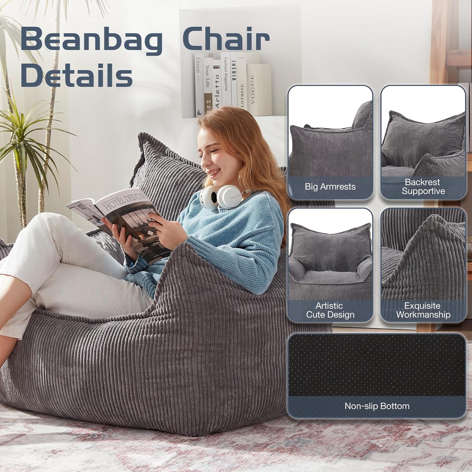 Giant Bean Bag Chair Sofa for Adults Teens, Comfy Corduroy Large Bean Bag Chairs with Armrests for Bedroom Living Room, Adult BeanBag Lazy Sofa Couch Chairs with Filler Included