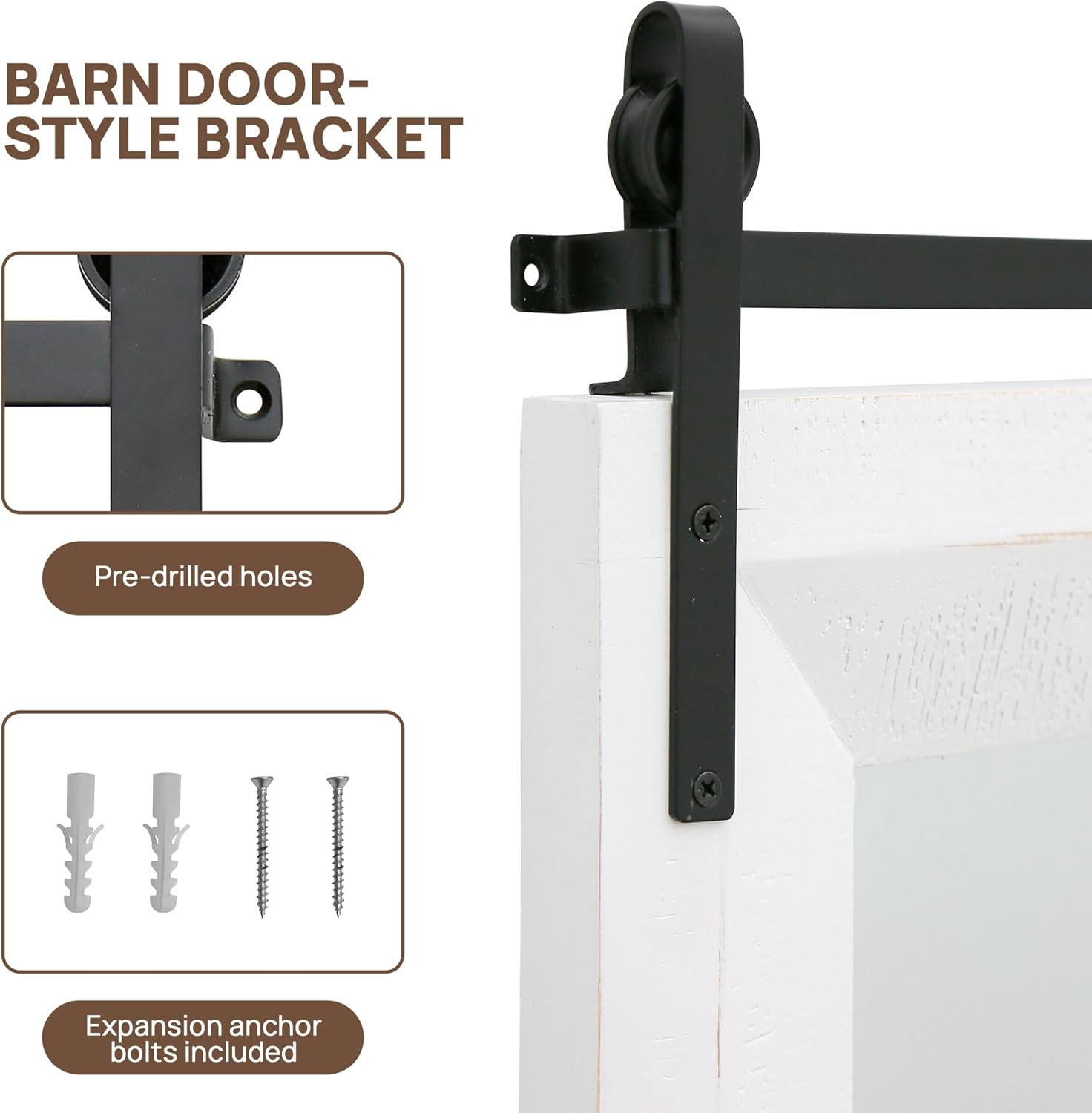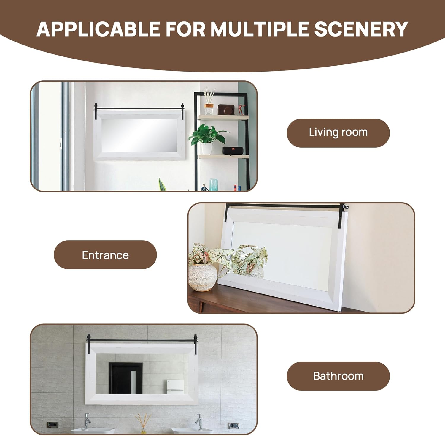 ALBAD Farmhouse Mirror for Wall Decor Wood Framed Bathroom Vanity Mirrors Vertical/Horizontal Hanging Barn Door Style Mirror for Living Room Bathroom Bedroom Entryway White