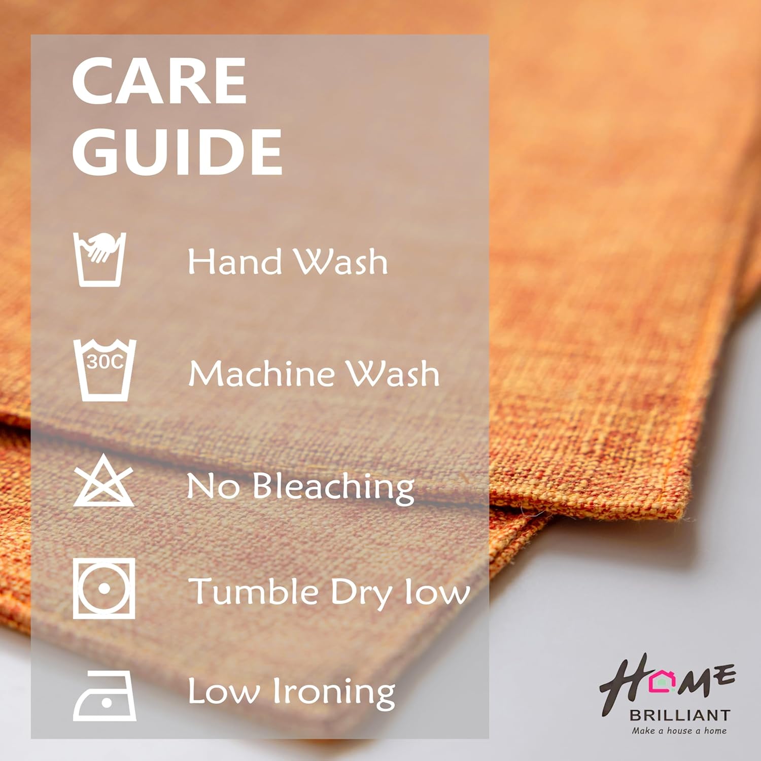 - Washing Instruction: Machine washable placemats, Wash placemat separately from other articles, gentle circle in low. No bleach. Iron to get risk of the crease