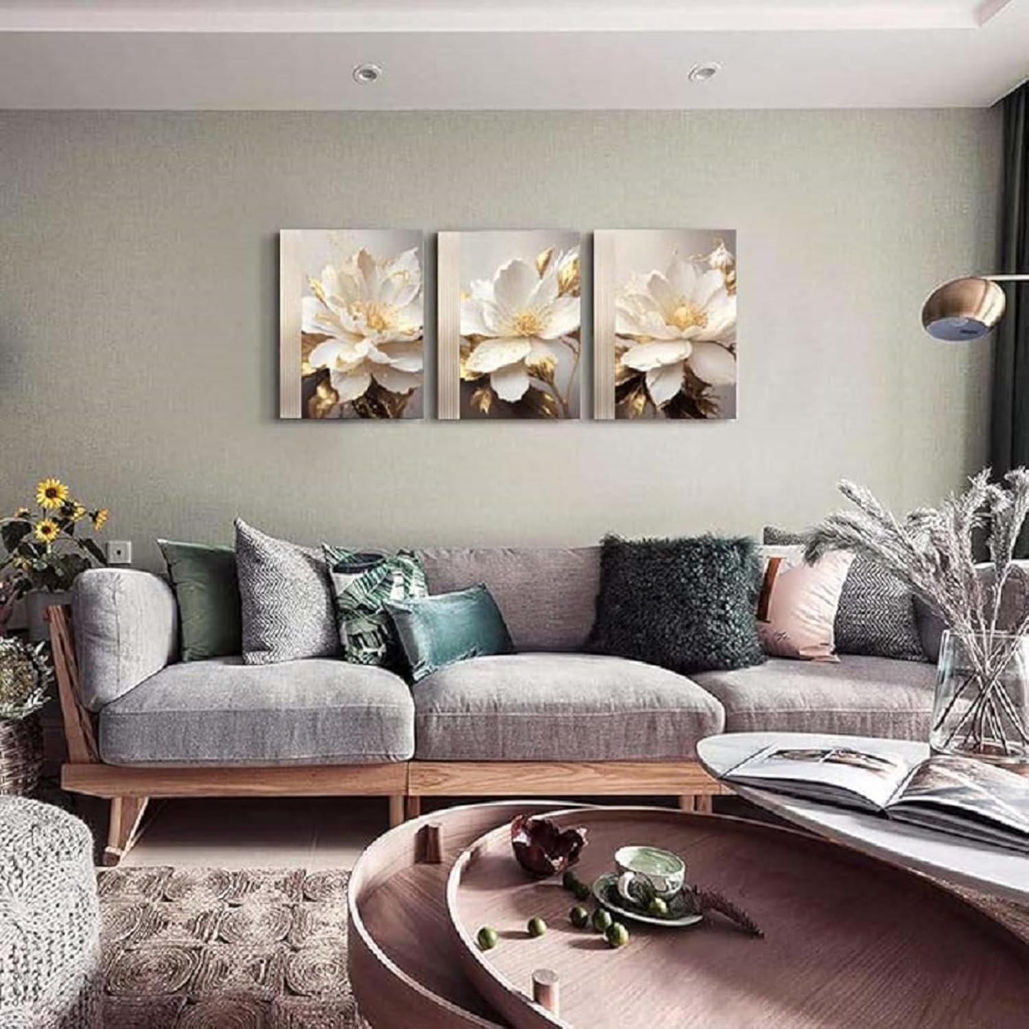 Yxbhhym Bathroom Wall Art White Flower Canvas Wall Art for Living Room Bedroom Wall Decor Floral Picture for Kitchen Hallway Home Decorations Framed Posters Prints 3 Piece