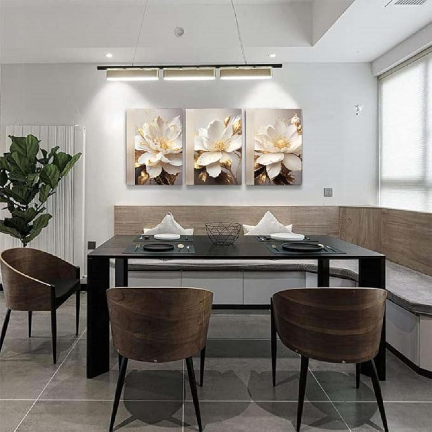 Yxbhhym Flower Canvas Wall Decor Living Room Bathroom Wall Art Paintings for Bedroom Wall Art Dining Room White Floral Picture Poster Artwork Modern Framed Art Prints 3 Piece Home Decorations