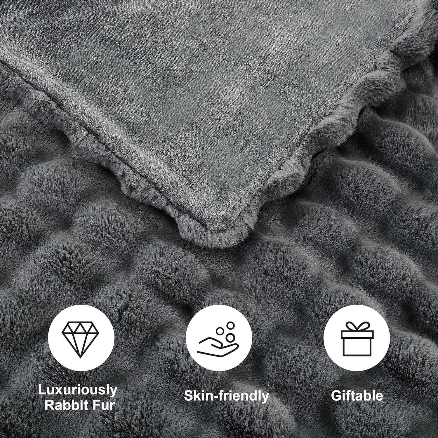 DREAMNINE Large Soft Thick Fuzzy Bubble Faux Rabbit Fur Bed Blanket Queen Size 80" x 90",Reversible Gray Plush Big Warm Shaggy Fluffy Blankets for Sofa, Solid Luxury Cozy Cute Bumpy Furry Blanket,Grey