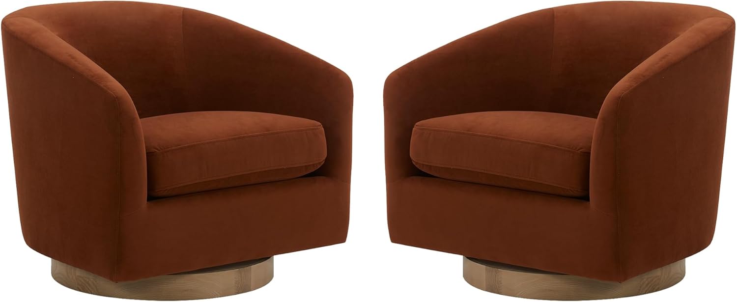 CHITA Swivel Accent Chair, FSC Certified Upholstered Velvet Barrel Chair for Living Room Set of 2, Fully Assembled, Burnt Orange