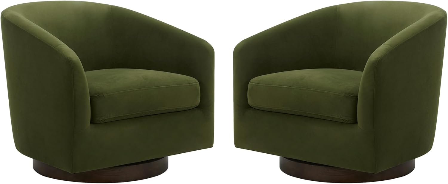 CHITA Swivel Accent Chair, FSC Certified Upholstered Velvet Barrel Chair for Living Room Set of 2, Fully Assembled, Forest Green