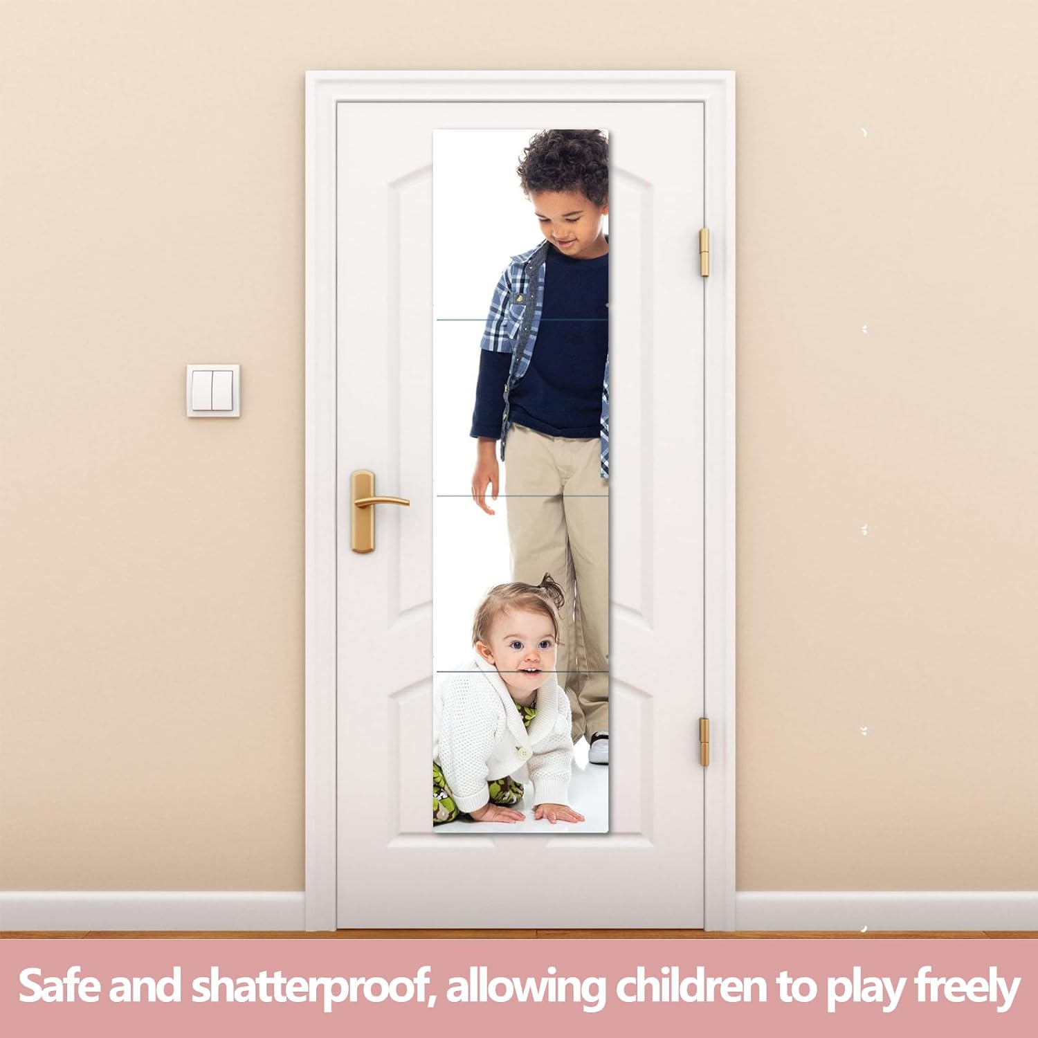 Unbreakable Full Length Wall Mirror,The Door Mirror,4Pack 14''x14'',Acrylic Kids Shatterproof Plexiglass Long Mirrors for Bedroom Closet,Children Non Glass Stick on Mirrors