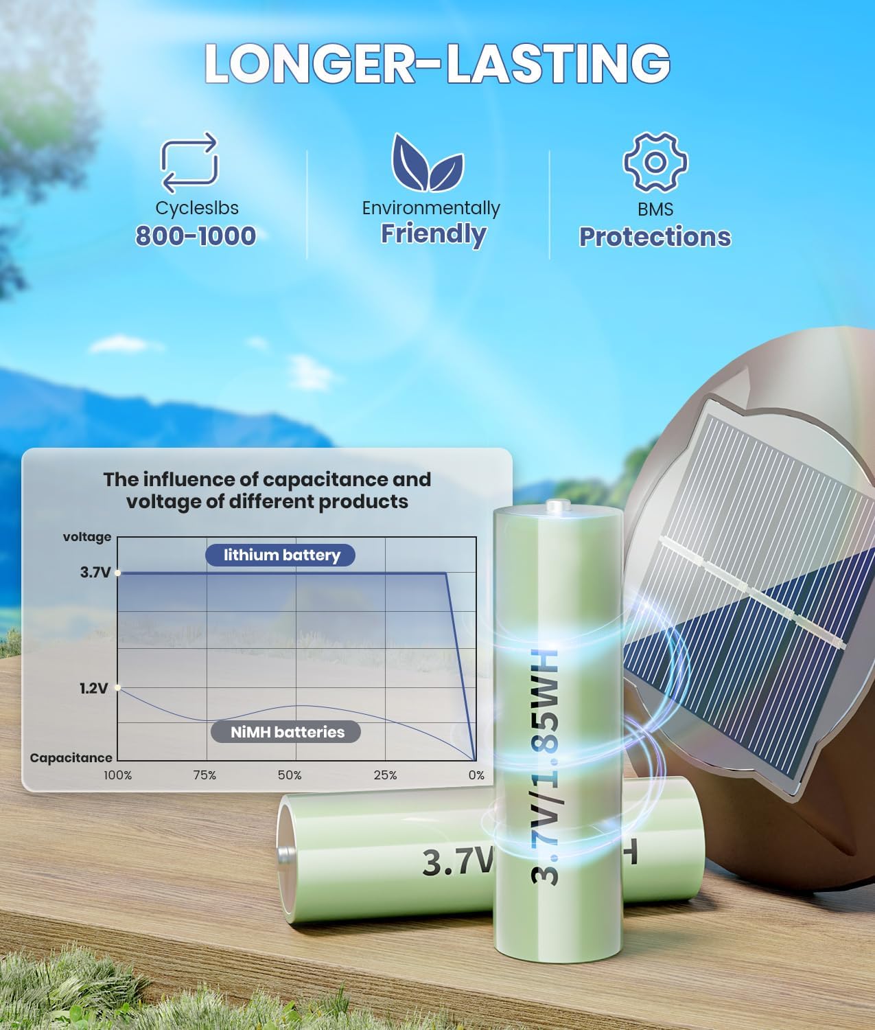 - Ultra Long Lasting Battery: Unlike ordinary ni-mh batteries, we use more reliable and larger capacity Lithium-ion battery. The solar panels convert sunlight into electricity and store it in the battery during the day, and the solar lights automatically illuminate at night. NEWMESSI upgraded solar landscape lights only need to be exposed to sunlight for 6-8 hours to provide up to 12-16 hours of bright lighting time.