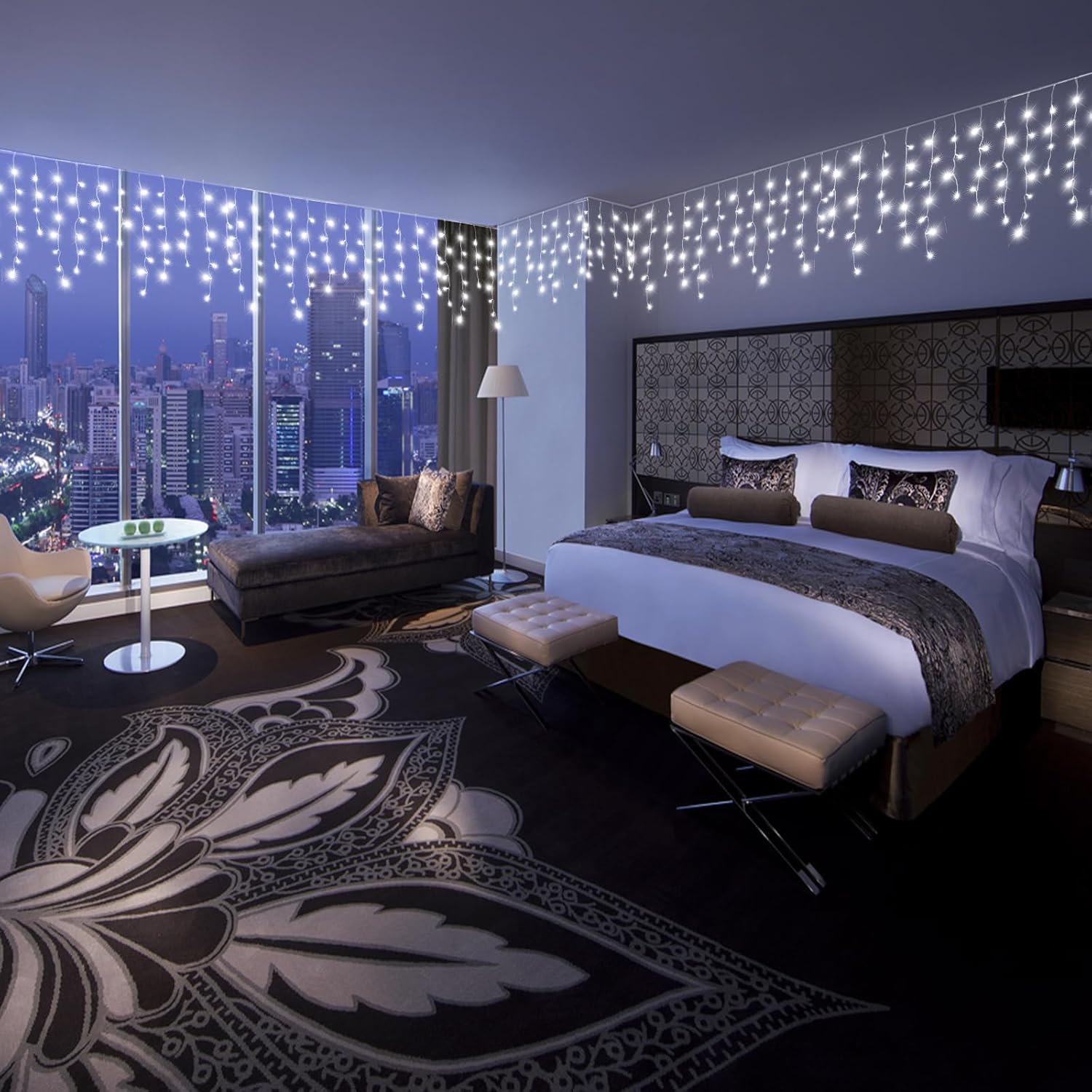 - 【Convenient Timer Function】Activate the timer by pressing the adapter button for 3 seconds. The lights will automatically turn on for 6 hours and off for 18 hours, saving you the hassle of manual operation. These indoor icicle lights can be easily draped or hung on outdoor roofs, yards, windows, patios, gardens, fences, or in indoor bedrooms, perfect for adding festive charm to every corner of your home.