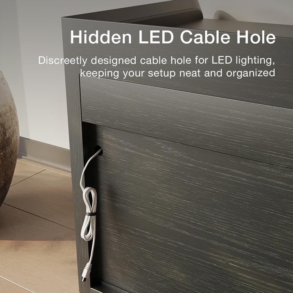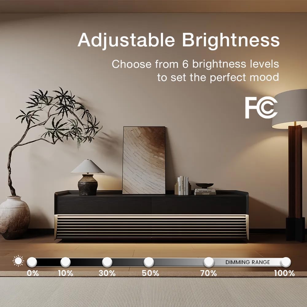 - Integrated LED Lighting: Enjoy the convenience of built-in LED lighting. The warm, 6-level adjustable lighting with remote control enhances the visual appeal of your TV console and makes your displayed items stand out.