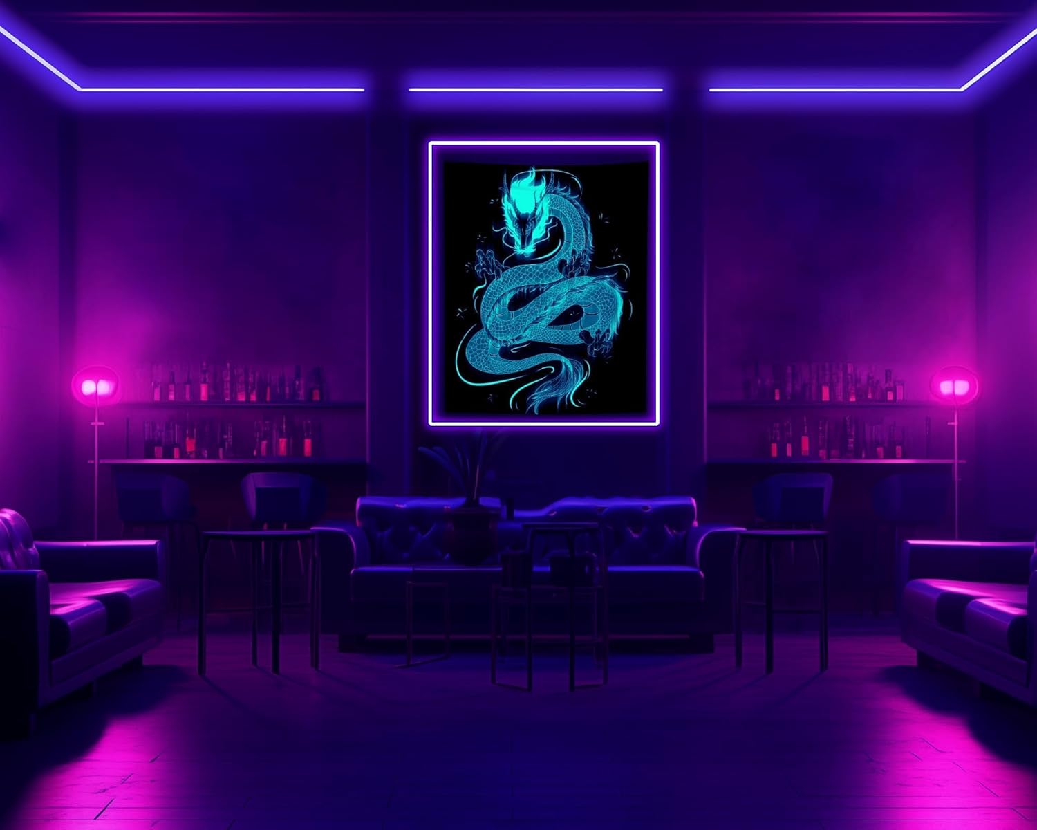 - UV REACTIVE / BLACK LIGHT: Dragon poster blacklight is printed with the latest heat transfer technology and UV reactive inks to produce a neon effect under black light. The actual visual effect depends on the power of the light you use, our pictures are taken under 40w 366nm UV light