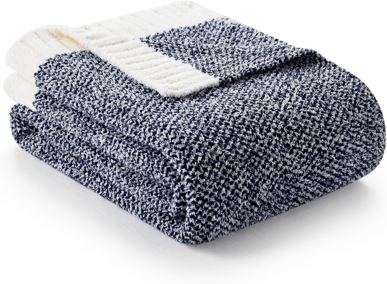 Snuggle Sac Navy Throw Blanket for Couch, Oversized Throw XL Super Soft Warm Blankets Cozy Knit Fuzzy Lightweight Throws for Sofa, Bed, Living Room, Heather Navy, 50x70 inches