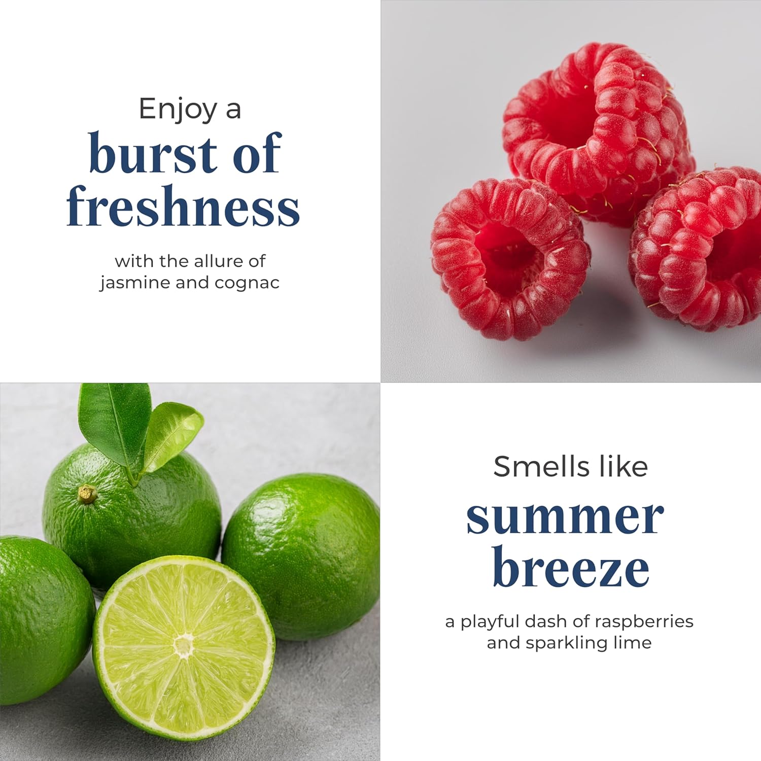 - INVIGORATING SCENT: Experience the essence of summer with a refreshing blend of raspberries, sparkling lime, jasmine, and cognac.