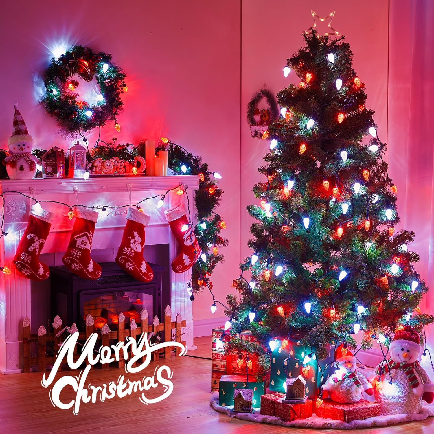 - Waterproof Outdoor Christmas Lights: IP44 waterproof, the popular Christmas C9 string lights can withstand all kinds of weather! Made from durable polycarbonate materials, these faceted C9 bulbs offer vibrant and long-lasting illumination without fading, cracking, or chipping. Suitable for outdoor and indoor decorations. Note: Please prevent the plug from being immersed in water.