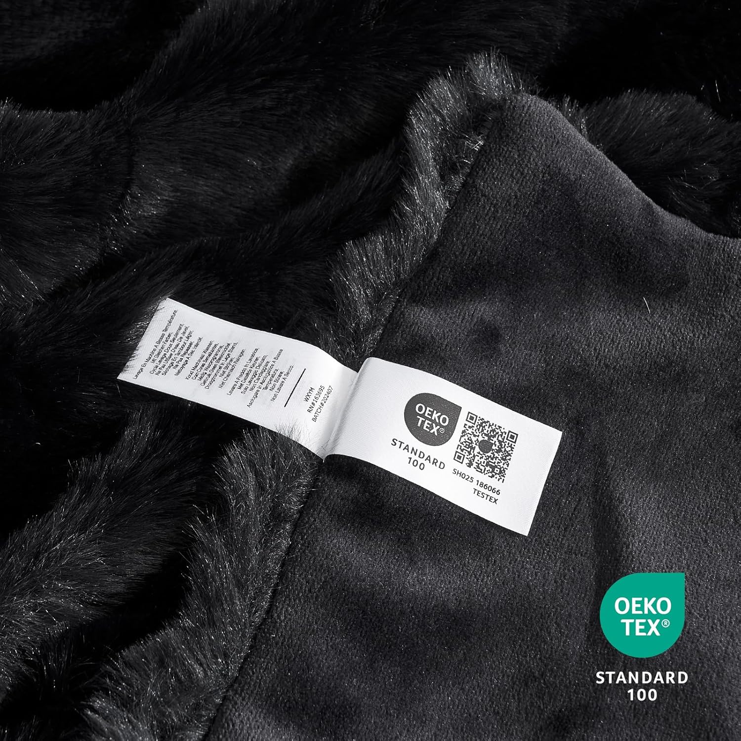 Cozy Bliss Faux Fur Throw Blanket for Couch, Fuzzy Soft Plush Thick Bubble Blanket for Sofa Bedroom Living Room, 108 * 90 Inches Black