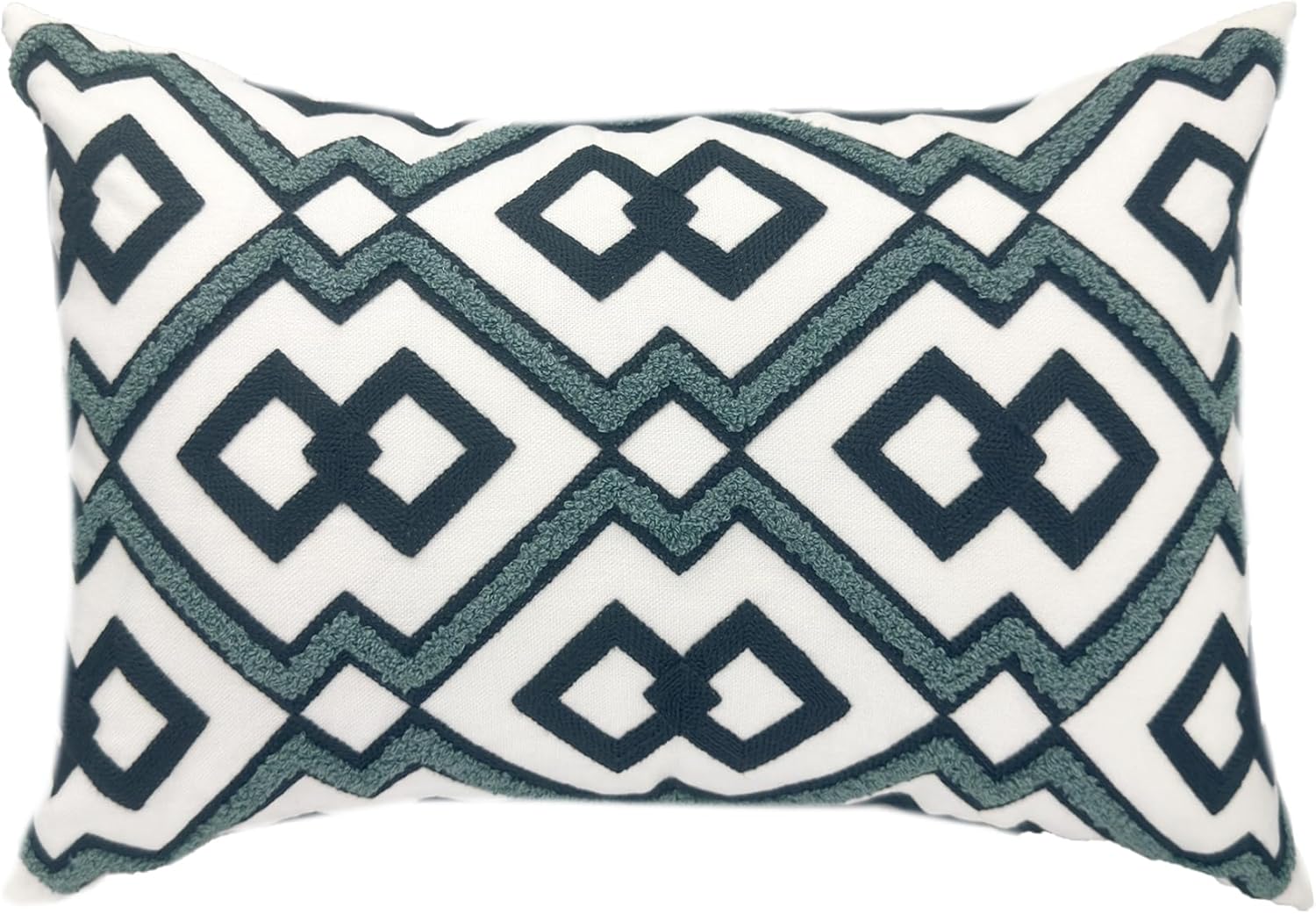 Alysheer Embroidered Lumbar Decorative Throw Pillow Cover 12"x 20", Classic Boho Geometric Embroidery Pattern Cotton Rectangular Cushion Case for Sofa Couch Living Room Bedroom (Navy Aqua)