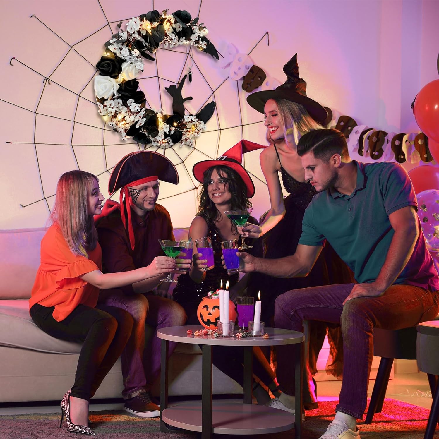 - Halloween Wreath Decorations: 2025 moon cat black halloween wreaths for front door adopts classic black cat, moon, rattan and roses Halloween elements! "Look, there's a kitten standing up and trying to touch the moon"! Very fun, create a mysterious and scary Halloween atmosphere for your home