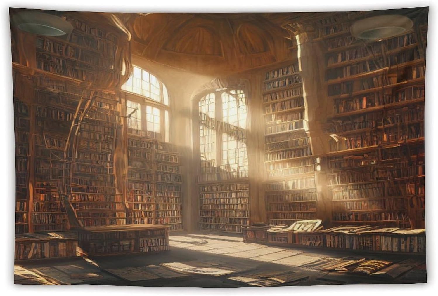 Kurtect Retro Bookshelf Tapestry,Medieval Mid Century Library Building Pattern Print Tapestries for Party Beach Picnic Blankets Tablecloths Living Room Wall Deocr, 40x60 in