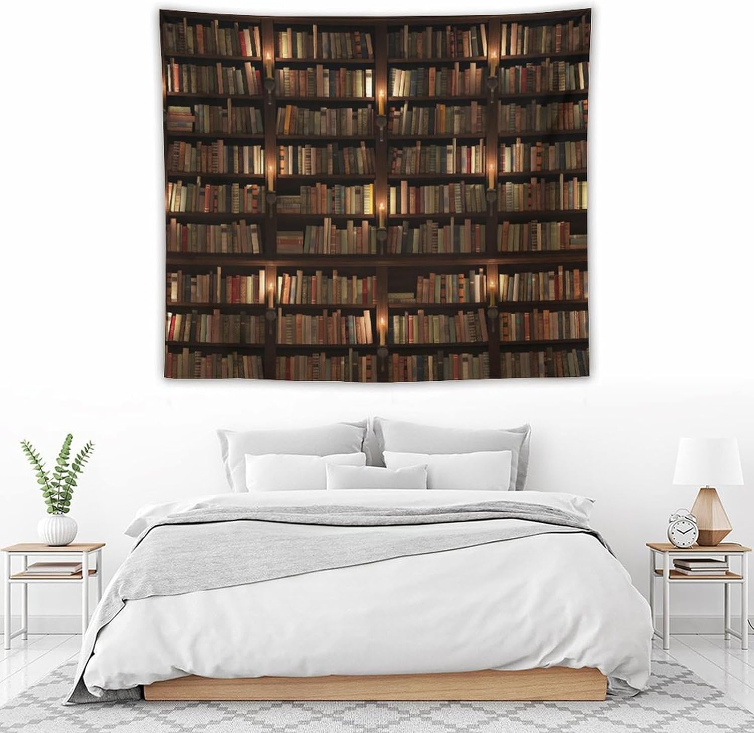 Kurtect Bookshelf Tapestry,Retro Library Bookcase Antique Mid Century Pattern Print Tapestries for Party Beach Picnic Blankets Tablecloths Living Room Wall Deocr, 50x60 in