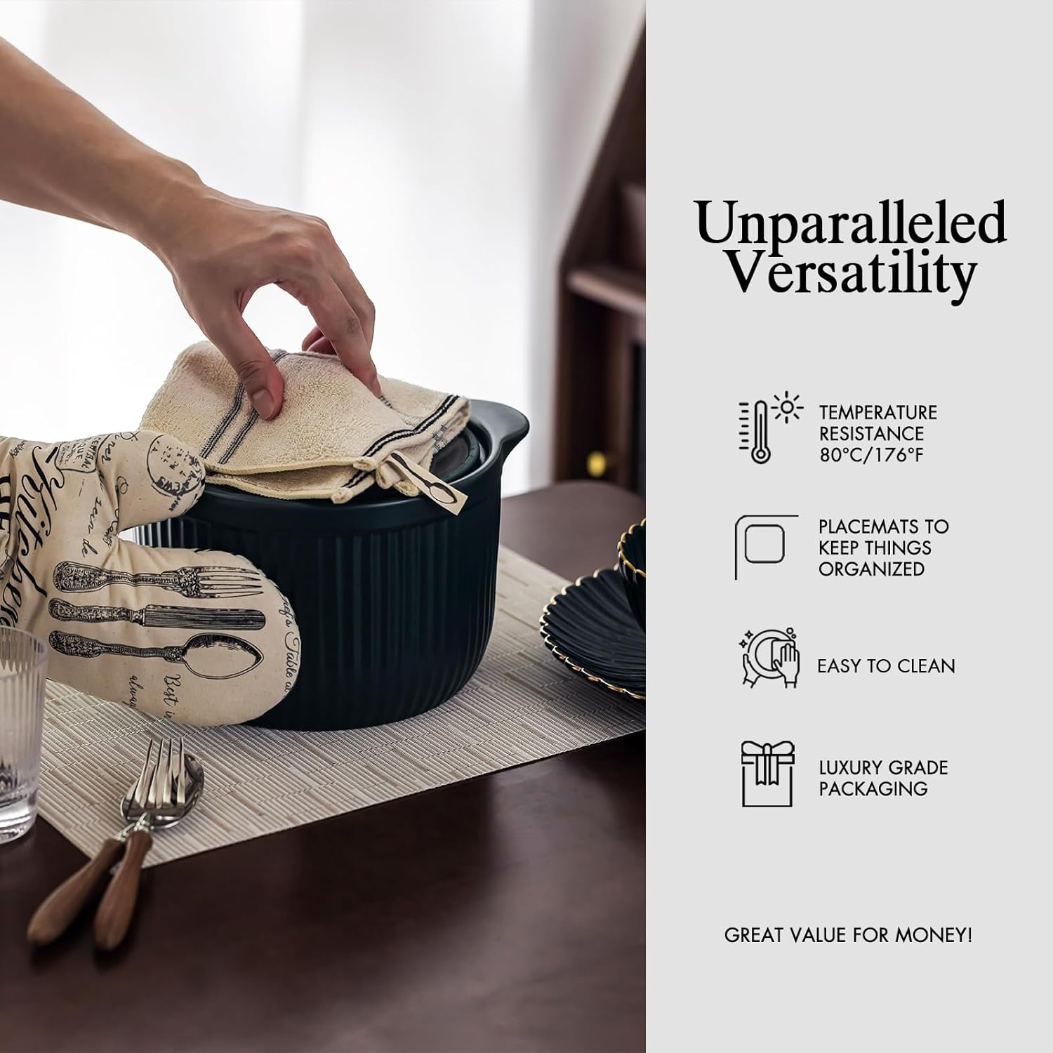 - Premium Quality and Durability: Onebento placemats are made from a high-quality blend of 70% PVC and 30% polyester, offering exceptional durability and aesthetic. This combination ensures long-lasting use and superior protection for your dining table, making it a perfect choice for quality-required consumers.