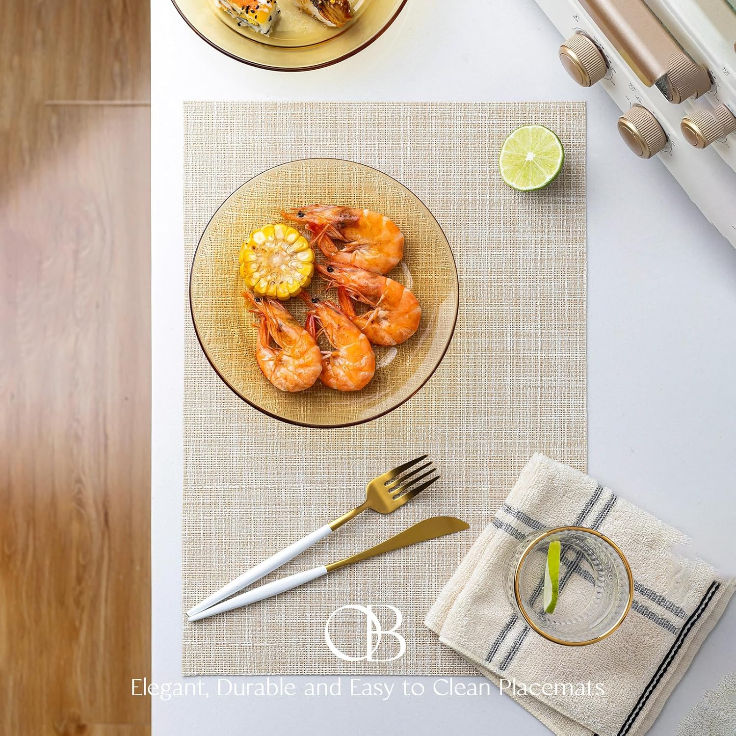 Placemats Set of 12 - Easy Clean Woven Vinyl Placemat for Dining Table, Indoor/Outdoor Place Mats, Washable PVC Table Mats(Beige)