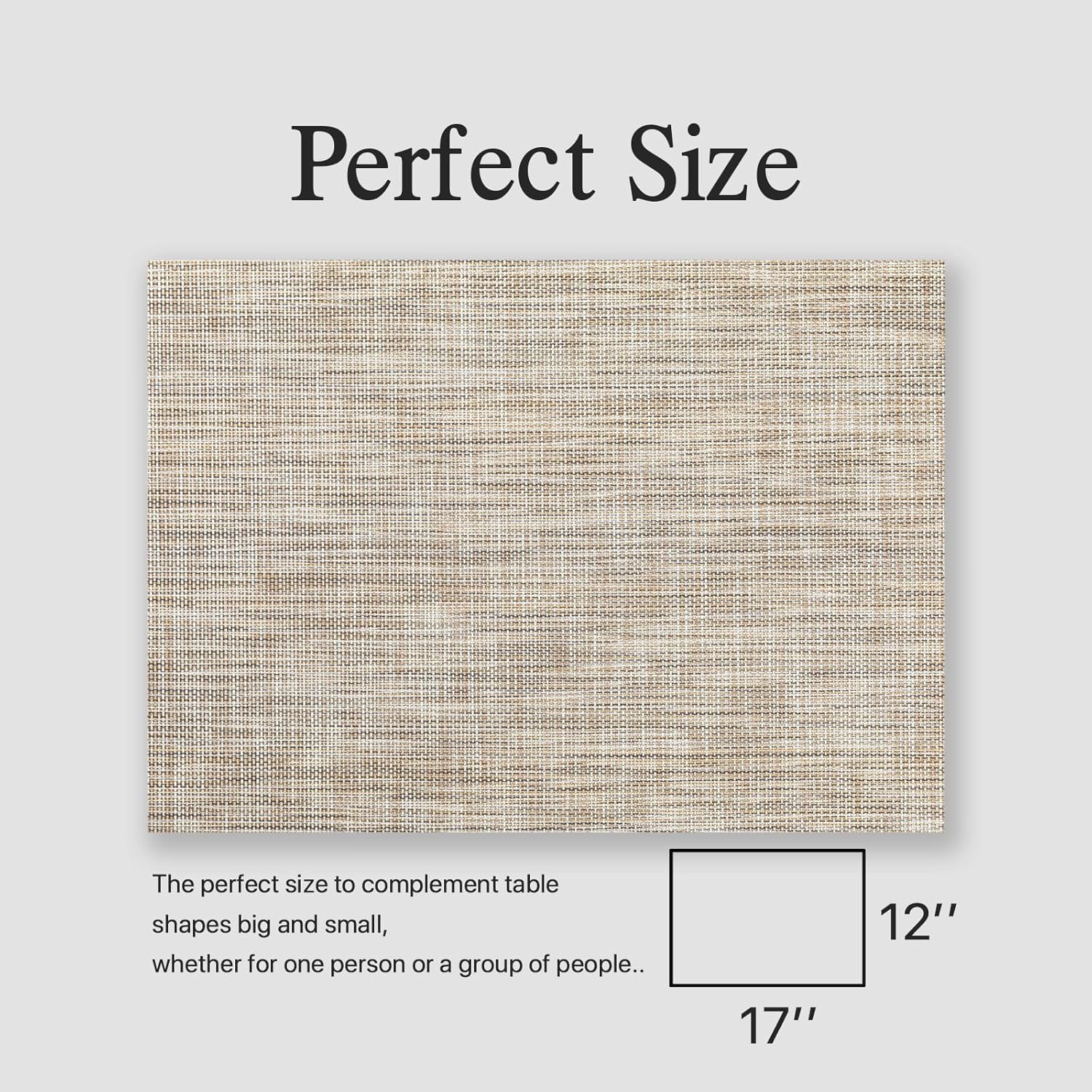 Placemats Set of 6 - Easy Clean Woven Vinyl Placemats for Dining Table, Indoor/Outdoor Place Mats, Washable PVC Table Mats(Caramel)
