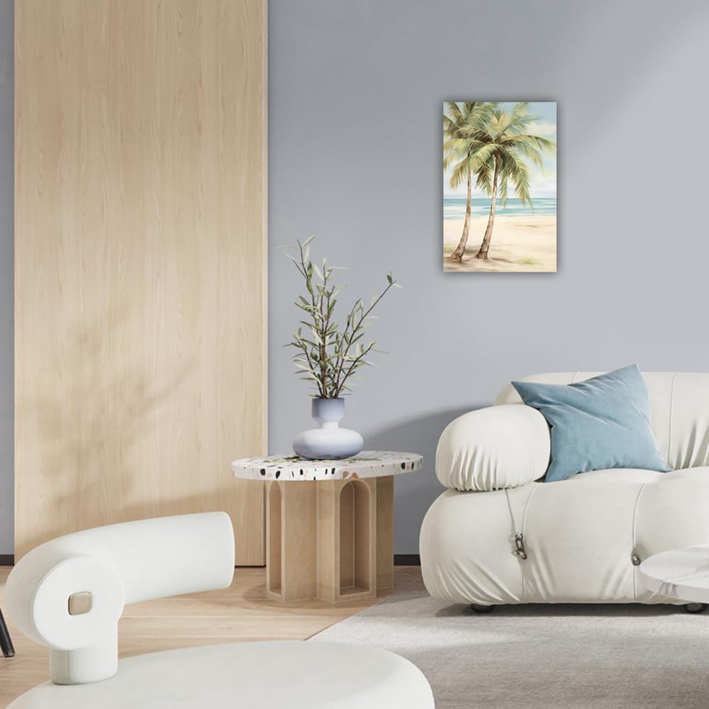 LURENCZH Tropical Beach Canvas Wall Art Seaside Palm Tree Picture Wall Decor Ocean Scenery Painting Prints for Bathroom Decor Framed(Beach-2,24.00" x 36.00")