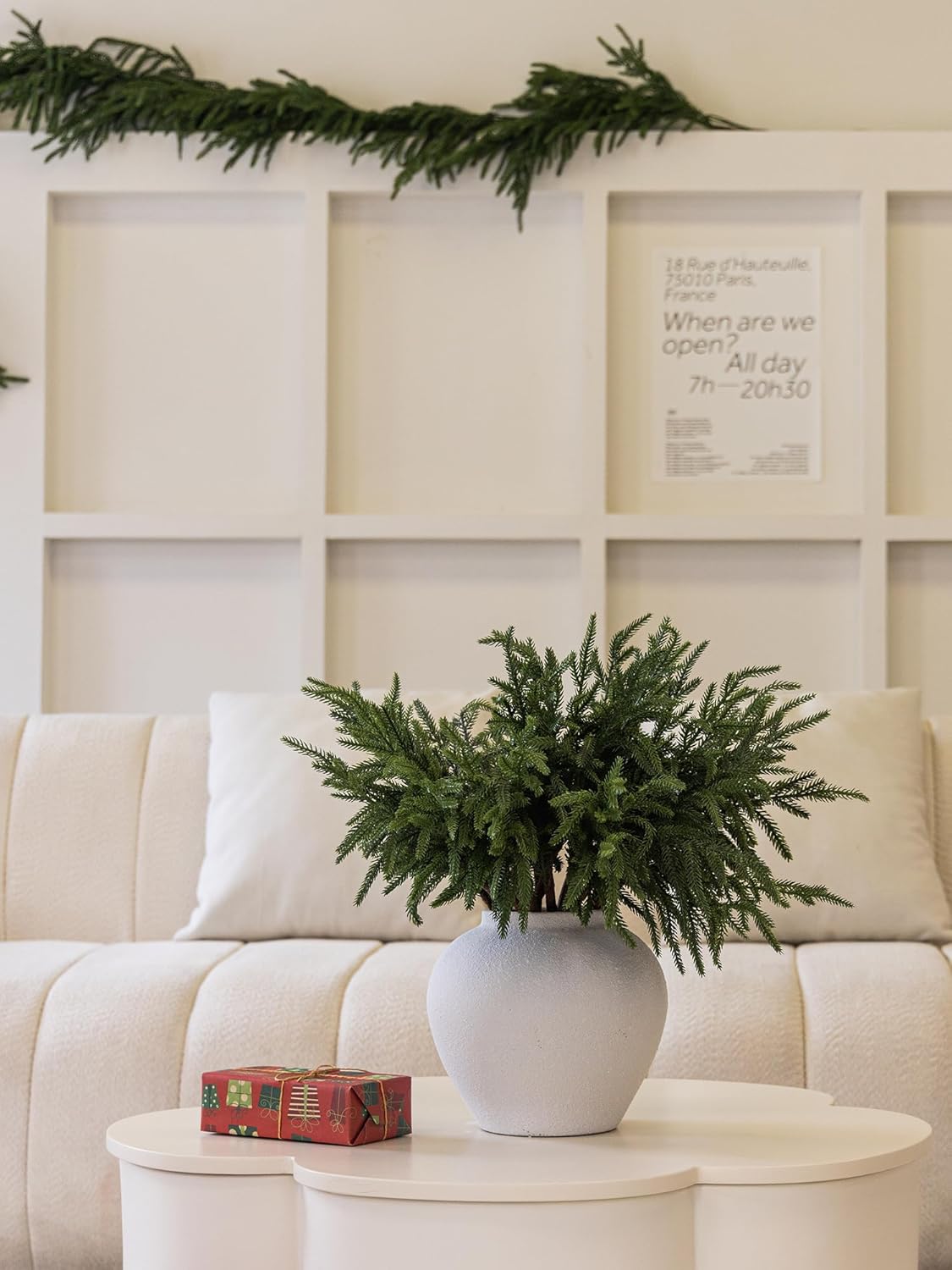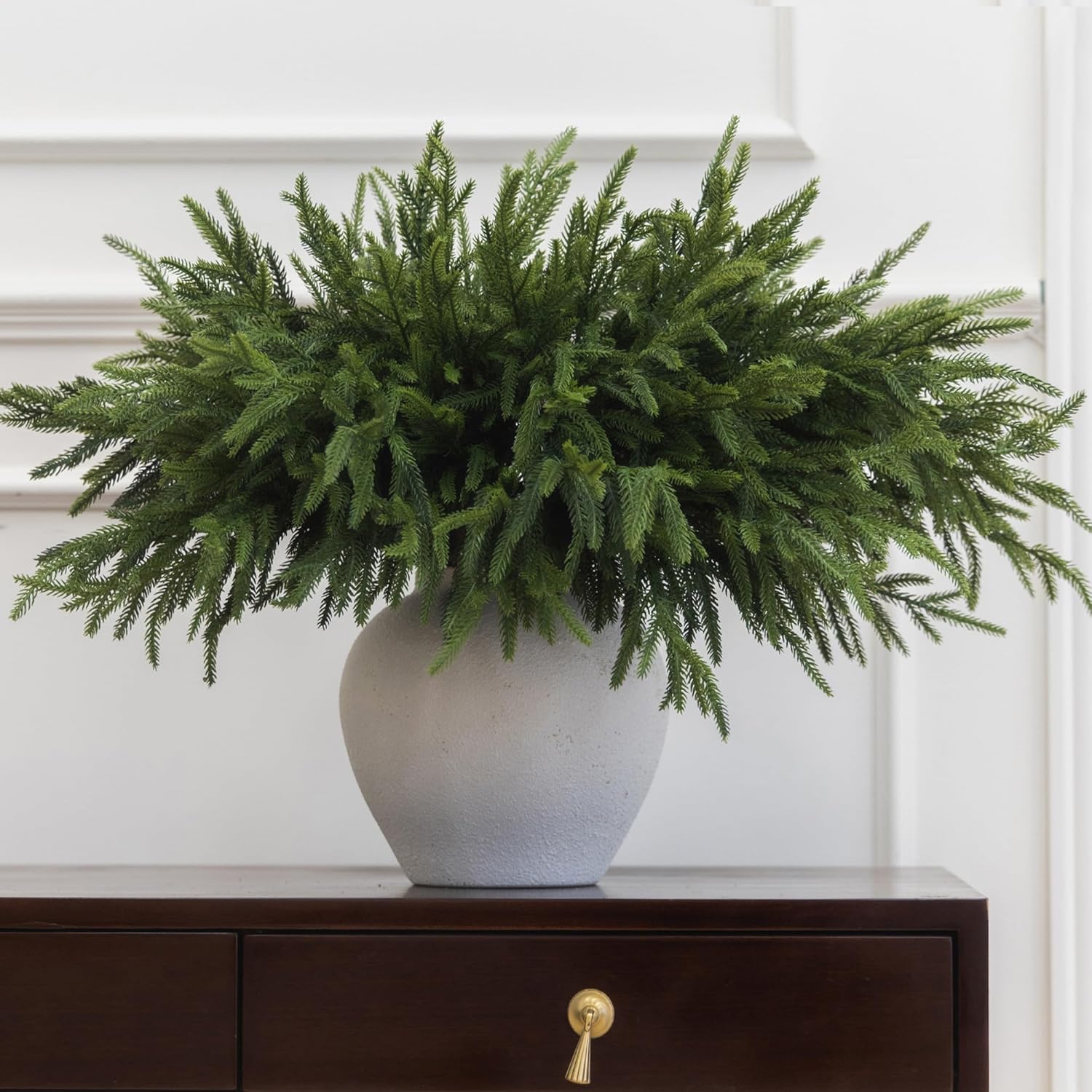 - 【Premium Quality and Natural Appearance】Crafted from high-quality PE, these branches mimic the natural green color of real Norfolk Pine, offering both aesthetic beauty and durability. After opening the package, simply let the product air out for a few hours to eliminate any initial odor, ensuring a better experience. Note: Vase not included.