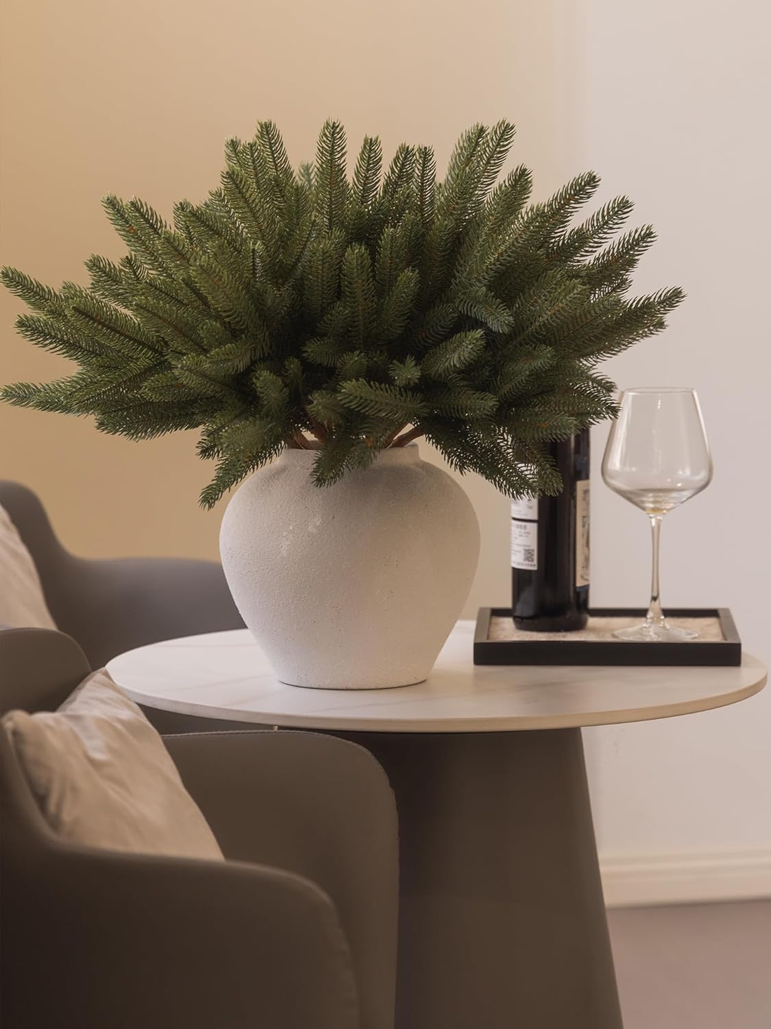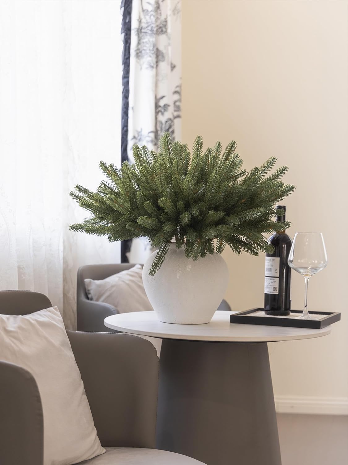 - 【Premium Quality and Natural Appearance】Crafted from high-quality PE, these branches mimic the natural green color of real cedar, offering both aesthetic beauty and durability. After opening the package, simply let the product air out for a few hours to eliminate any initial odor, ensuring a better experience. Note: Vase not included.