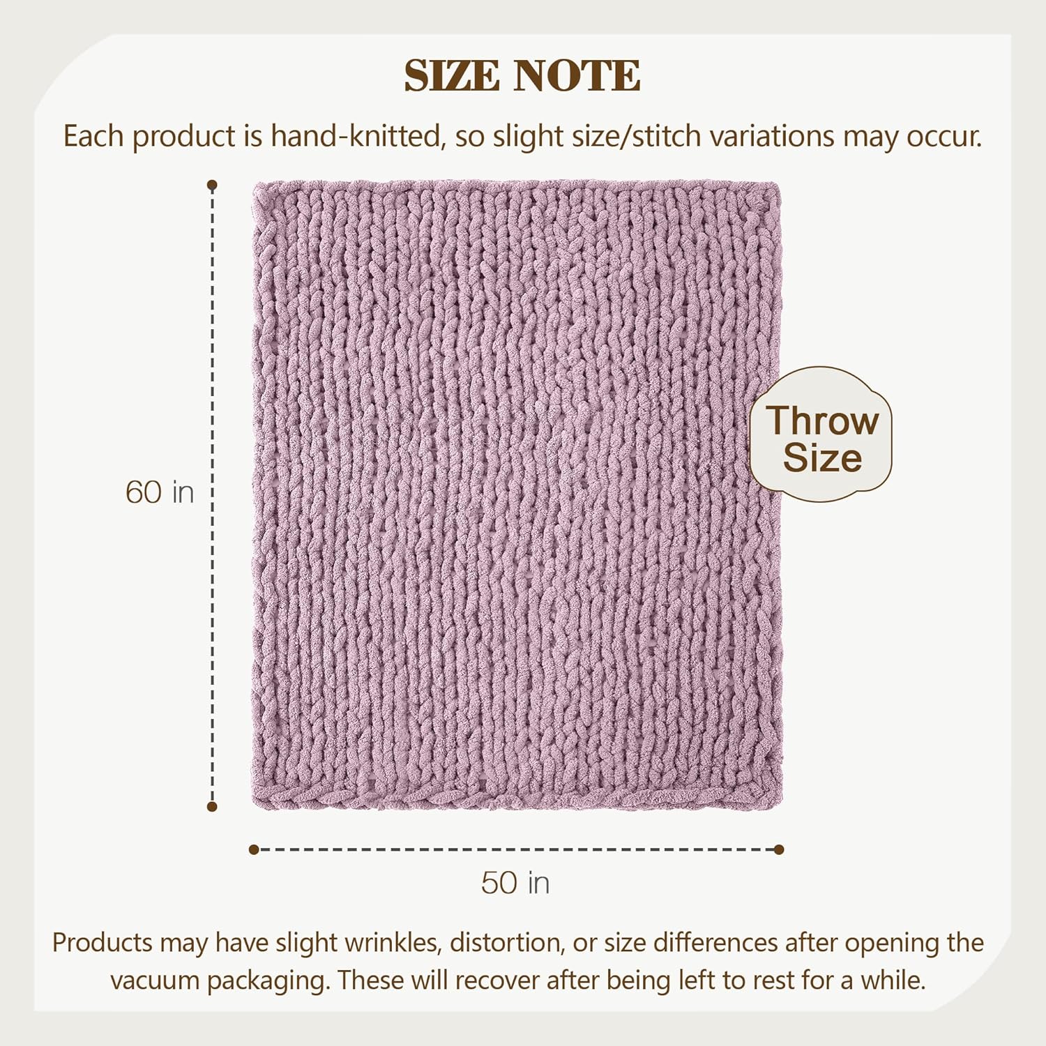 Carriediosa Chunky Knit Throw Blanket 50" X 60", 100% Hand Made Large Chenille Loop Yarn Soft Fluffy Throws for Couch Sofa Bed, Big Crochet Cozy Heavy Thick Cable Woven Blankets, Purple