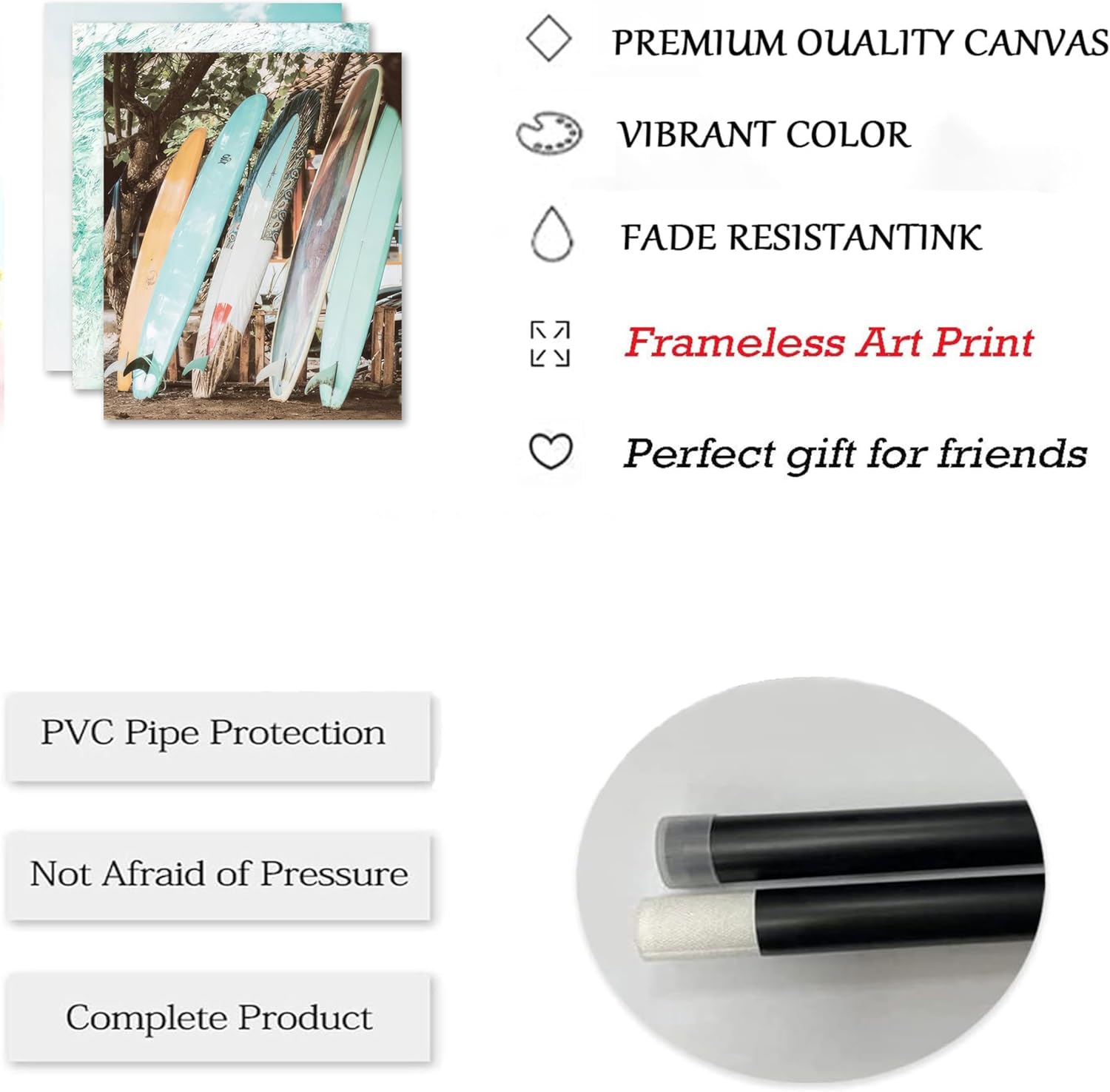 - 【Unframed Canvas Wall Art】 For our 6 piece beach wall art sizes, there are 8*10in,12*16in. It is a UNFRAMED poster, only printed on the canvas WITHOUT any stretching on wood frame