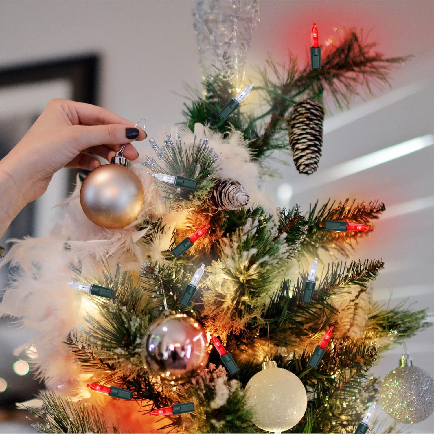 - [8 Lighting Modes]: WATERGLIDE 2 pack 50LED Christmas Red & White mini string lights have 8 lighting modes for you to choose - Combination, In waves, Sequential, Slow Glow, Chasing/Flash, Slow fade, Twinkle/Flash, Steady on. Adjust the lighting modes by pressing the round button on the battery case