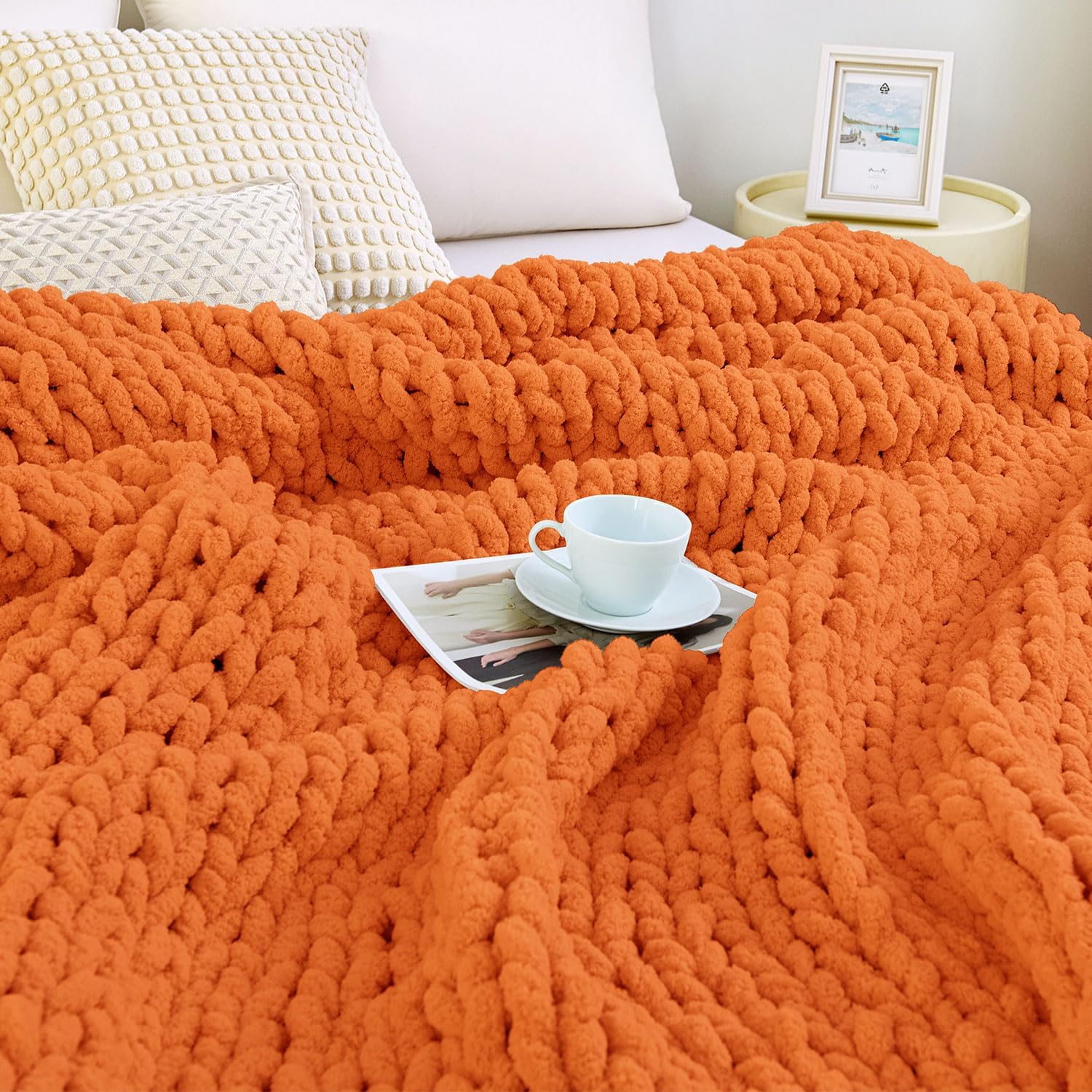 - Chunky Cable Knit Design - Our chunky knit blanket throw is made of high quality chenille yarn. The excellent knitting process prevents it from falling off, pilling or fading. Experience the timeless elegance of cable knit with our chunky blanket, adding a touch of sophistication to any room.