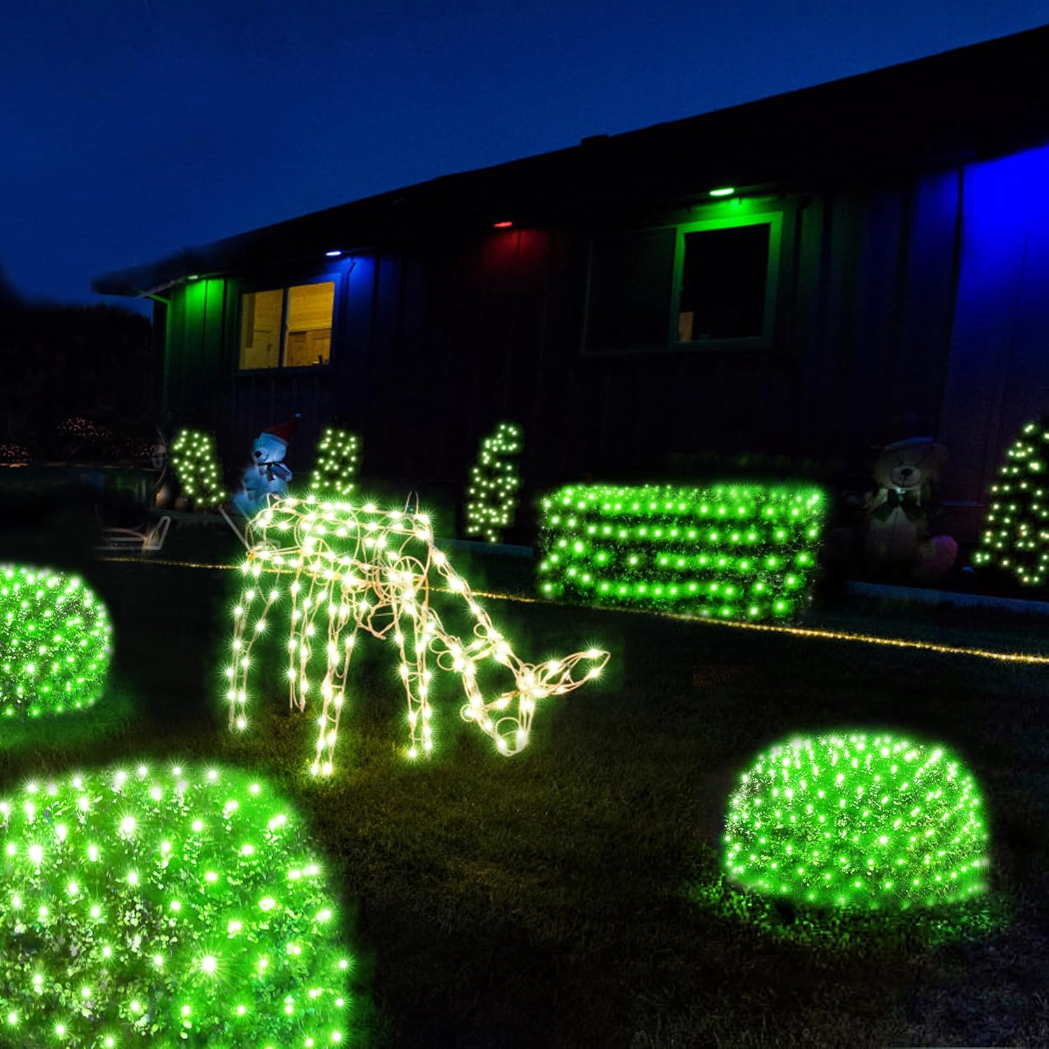 - High Quality Christmas Net Lights: Our Green Christmas net lights have a size of 8.4ft x 5.2 ft and are designed with a 29V low-voltage output to ensure that the light bulbs will not burn out after prolonged use and can be safely touched. High energy efficiency, low power consumption and no radiation characteristics, especially suitable for shrubs and lawn Christmas decor.
