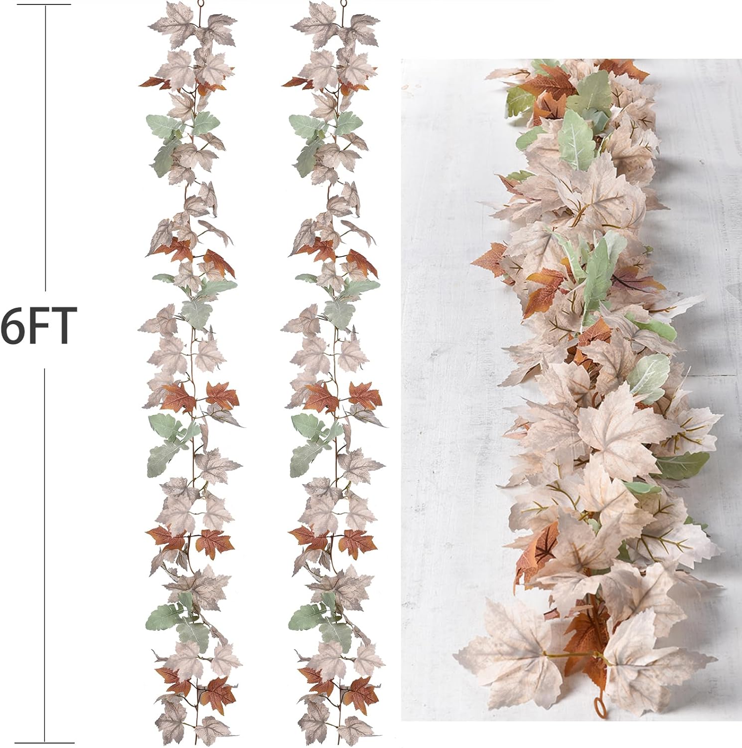 Lvydec 2 Pack Fall Maple Garland - 5.9ft/Piece White Artificial Fall Foliage Garland Colorful Autumn Decor for Home Wedding Party