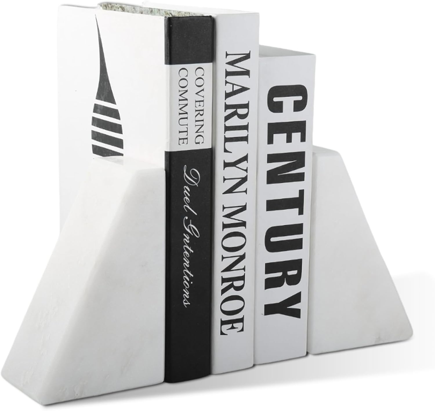 Marble Book Ends Decorative, Unique Bookends for Shelves, White Stone Bookends Holds Heavy Books, Weighted Book Holder Stopper for Home Office Desk Bookshelf Decoration, Set of 2
