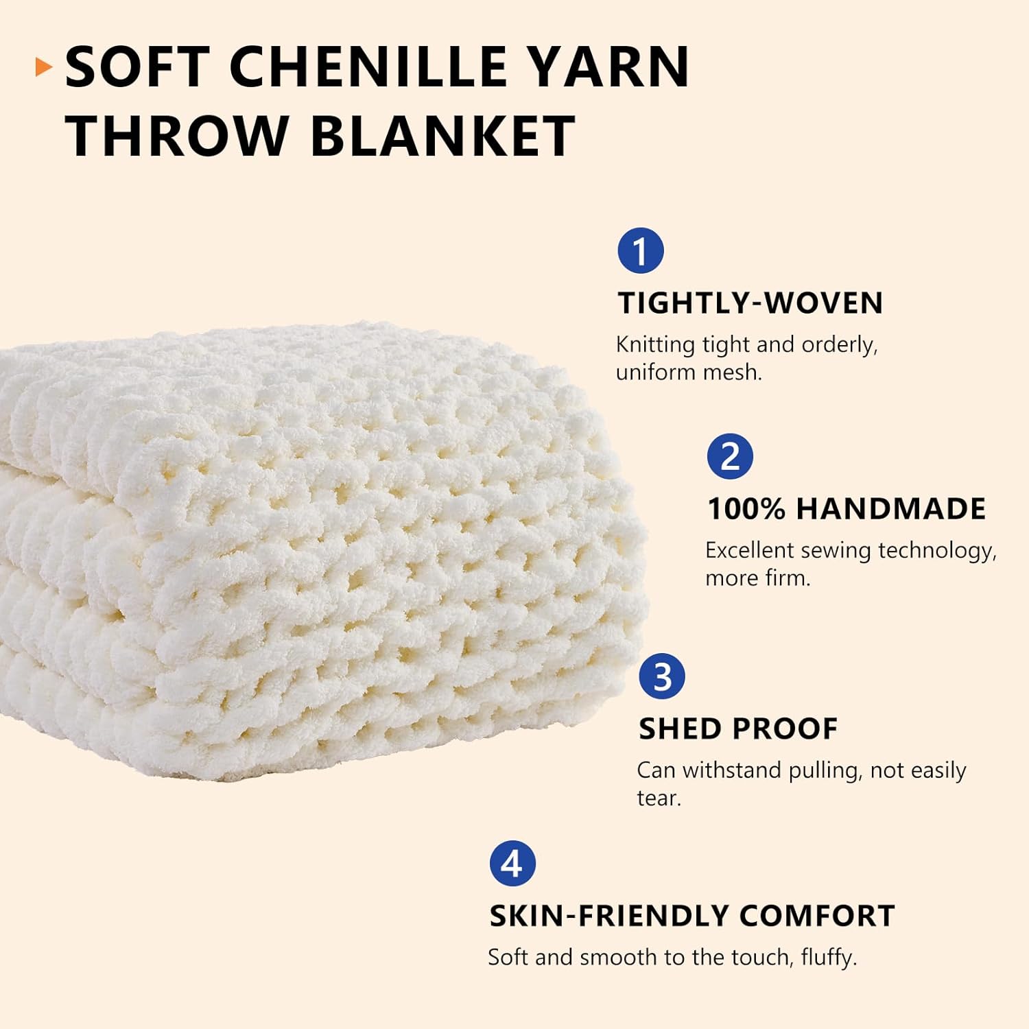 - 100% Handmade Chunky Knit Blanket: Our knit blanket throw is made from 100% hand-woven fabric with premuim Chenille yarn, excellent handcrafted knitting improves yarn density to create a warm and soft touch, full body hug to immerse you in tenderness