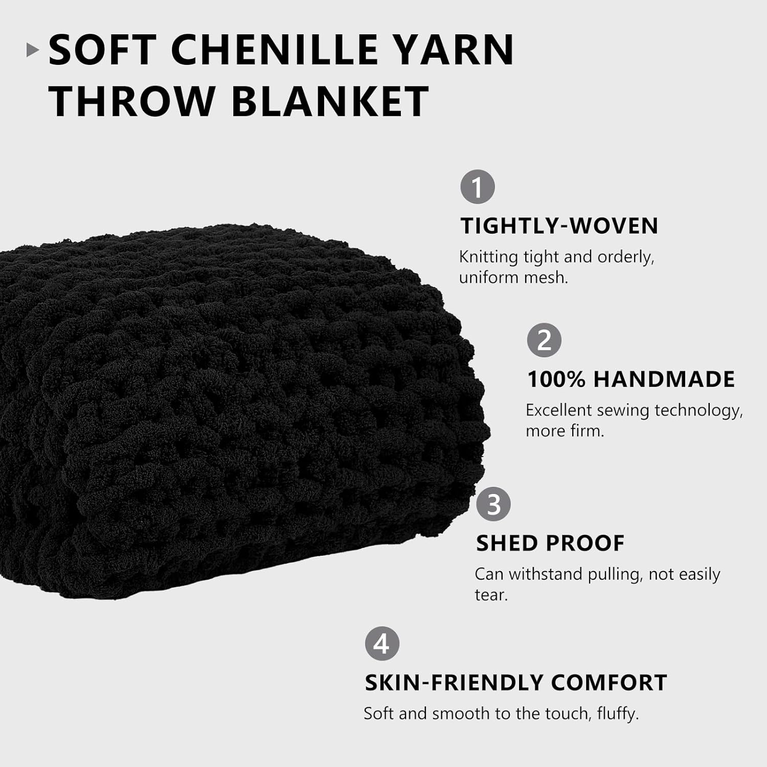 - 100% Handmade Chunky Knit Blanket: Our knit blanket throw is made from 100% hand-woven fabric with premuim Chenille yarn, excellent handcrafted knitting improves yarn density to create a warm and soft touch, full body hug to immerse you in tenderness