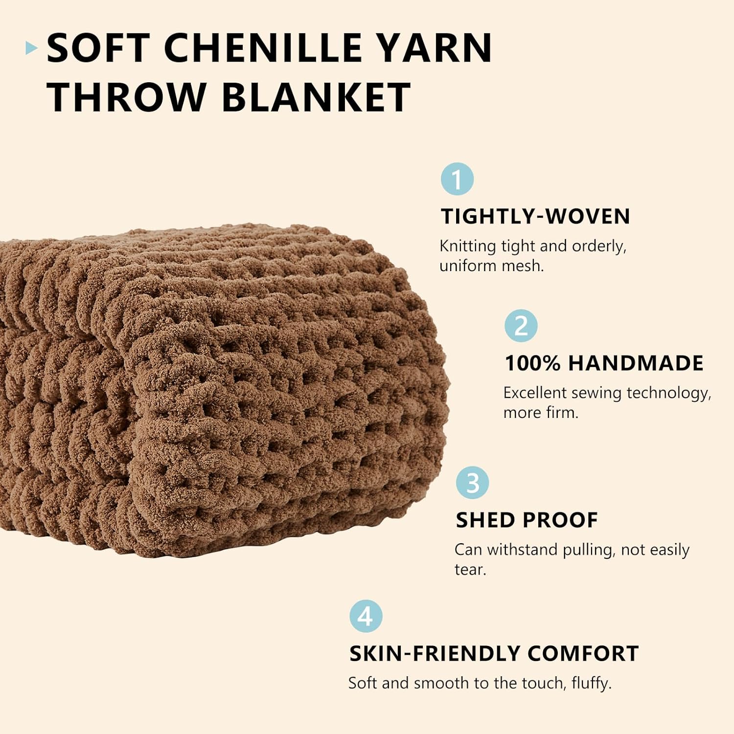 - 100% Handmade Chunky Knit Blanket: Our knit blanket throw is made from 100% hand-woven fabric with premuim Chenille yarn, excellent handcrafted knitting improves yarn density to create a warm and soft touch, full body hug to immerse you in tenderness