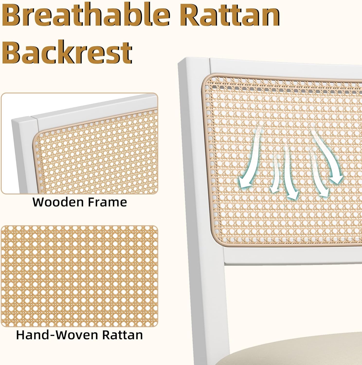 - ăBreathable Rattan BackăThe hand-woven kitchen chairs with a natural open-weave design and rattan back promote good airflow, making them exceptionally comfortable, especially in warmer climates. The inherent flexibility of rattan adds a gentle give, further enhancing seating comfort