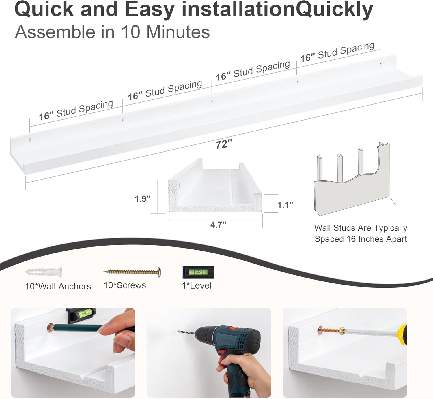 • Multi-Functional: Get creative and find more functions other than the long picture ledge shelf. FLYJOE storage ledge shelves can act as a kids' bookshelf, display shelf for collectibles figures, and more.